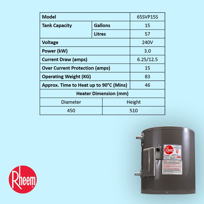 Rheem 57L 65SVP15S Classic Electric Storage Water Heater