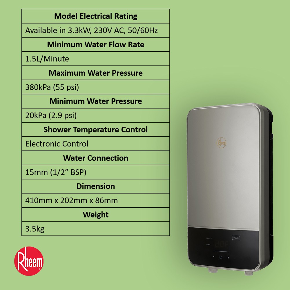 Rheem Prestige Platinum Instant Water Heater w/ Rain Shower Set w/ Delivery & Installation