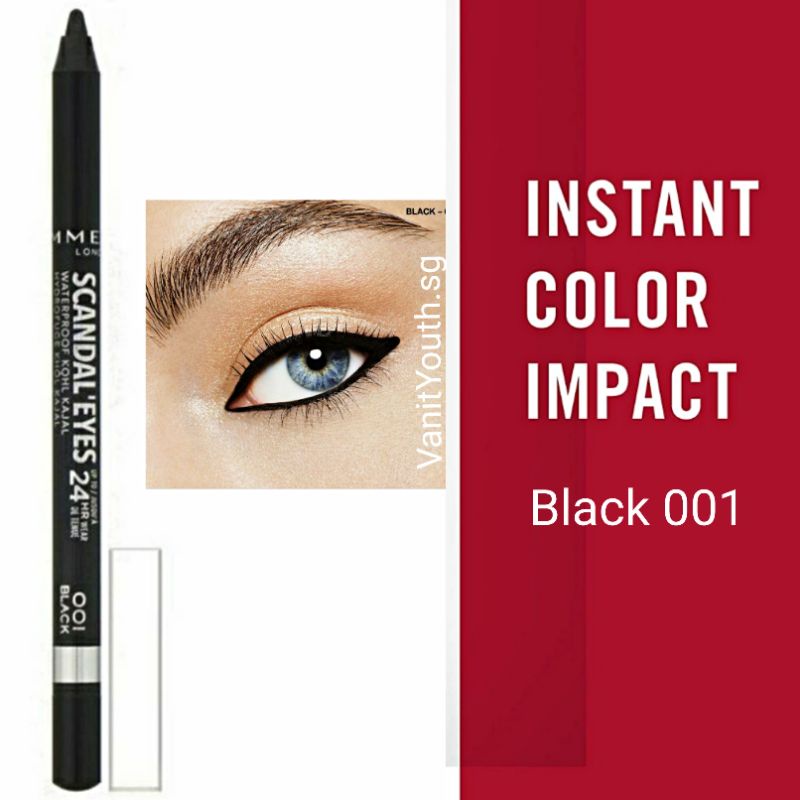 Rimmrl Scandaleyes, 24HR Wear, Waterproof Kohl Kajal Liner, 001 Black, .04 oz (1.3 g)
