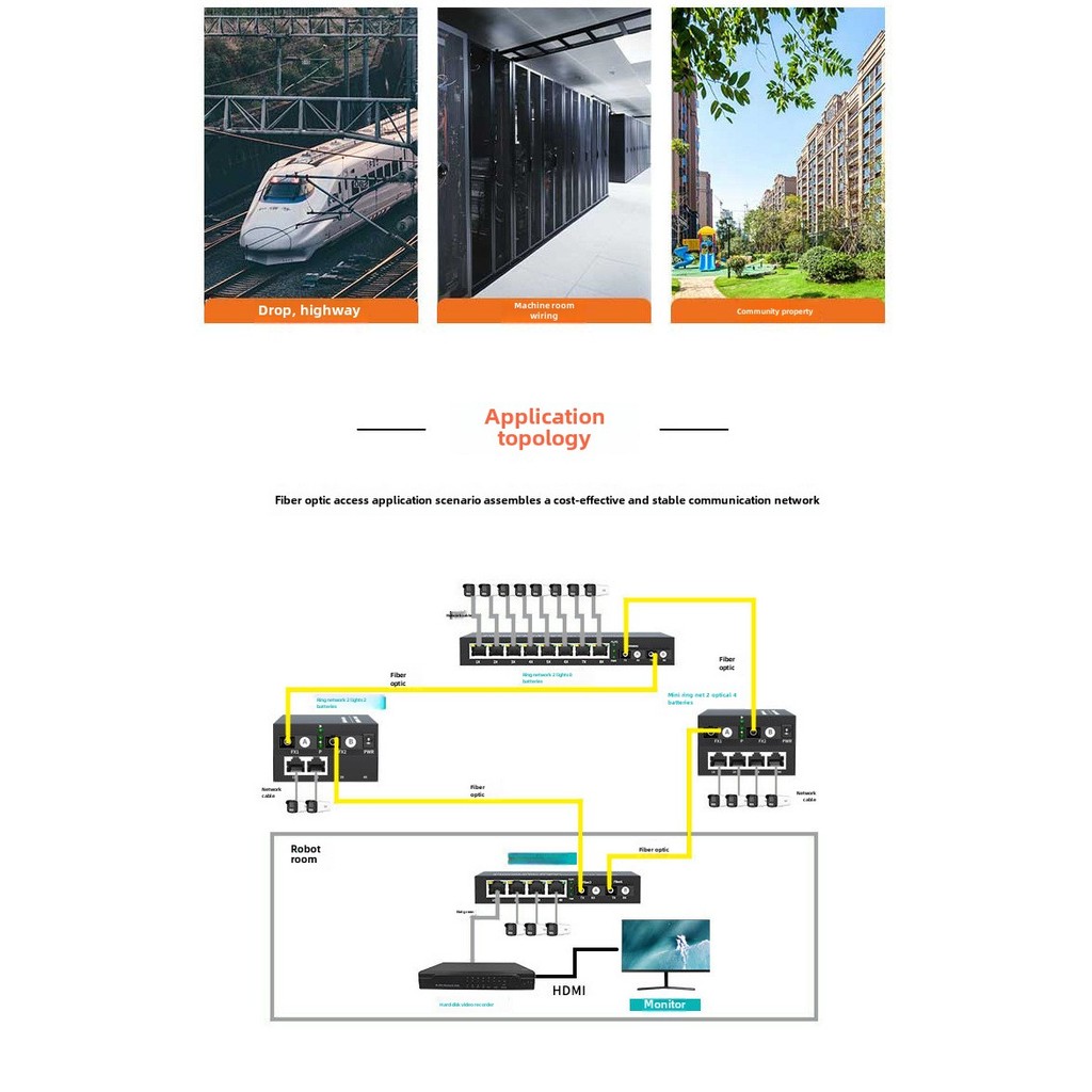 Ring network poe fiber optic transceiver gigabit cascade convergence