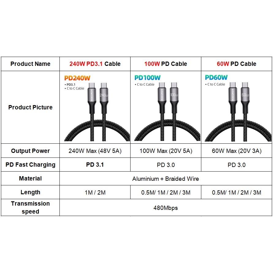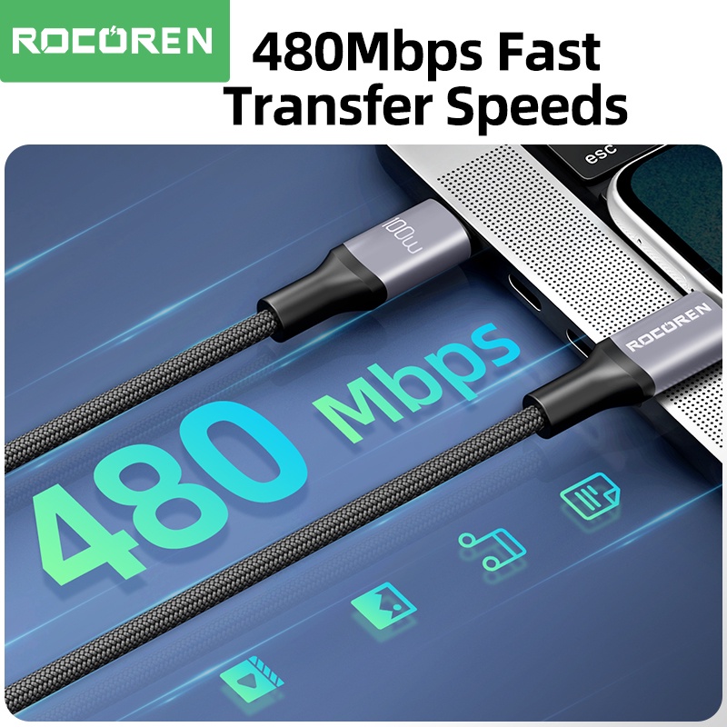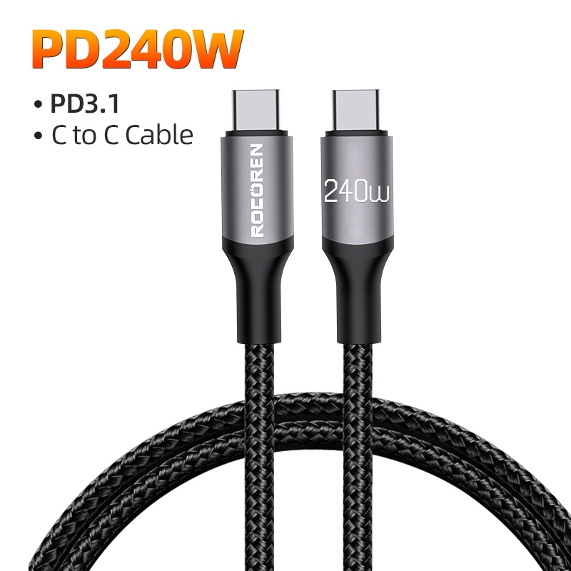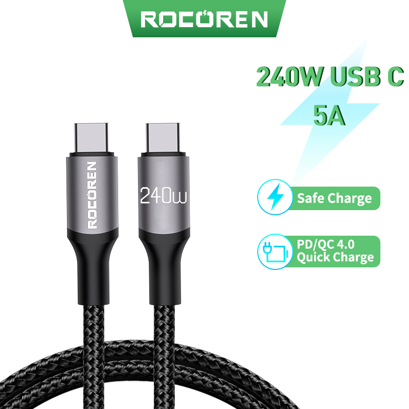 Rocoren 240W USB Type C To USB C Cable PD 3.1 100W 5A Fast Charging Charger Cable USBC Cord 2M 3M For MacBook Pro Laptop Xiaomi