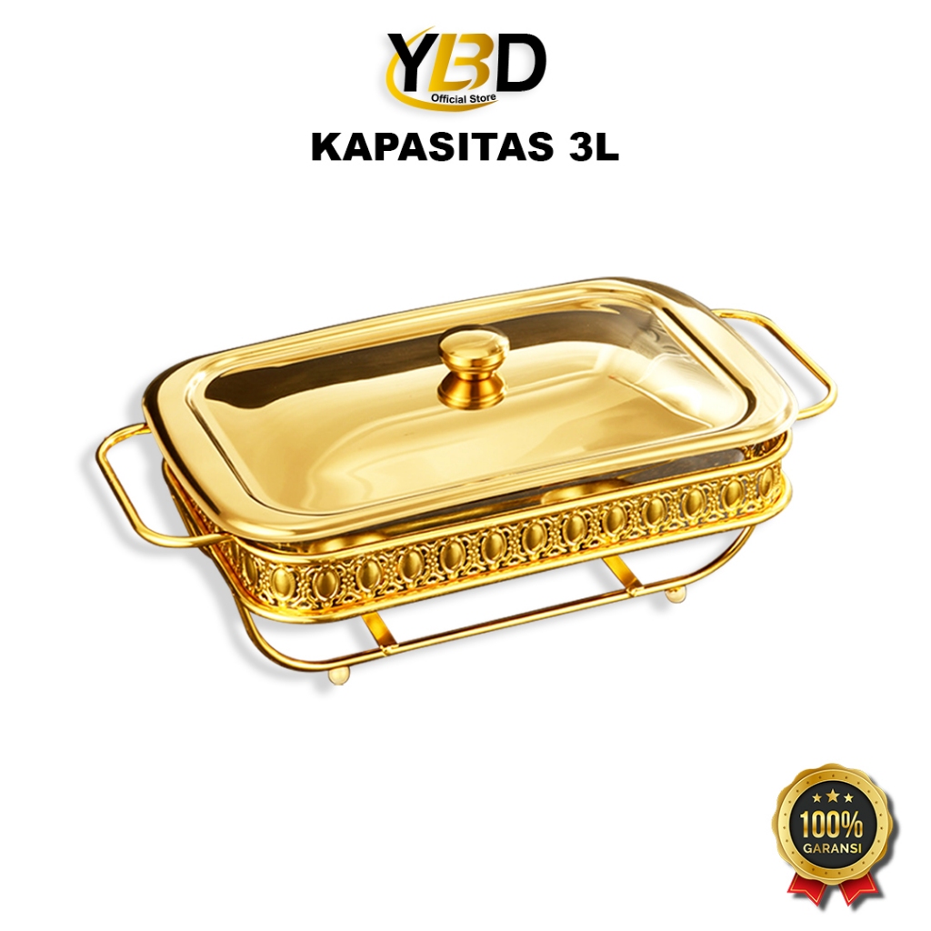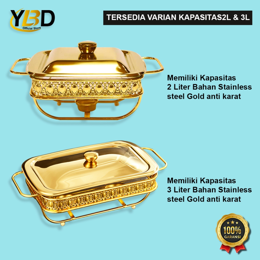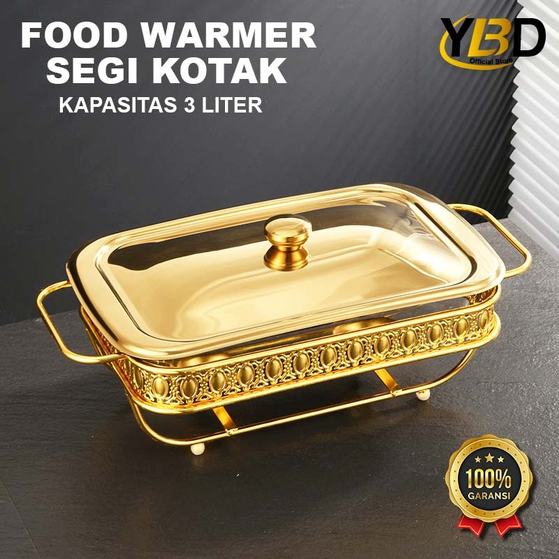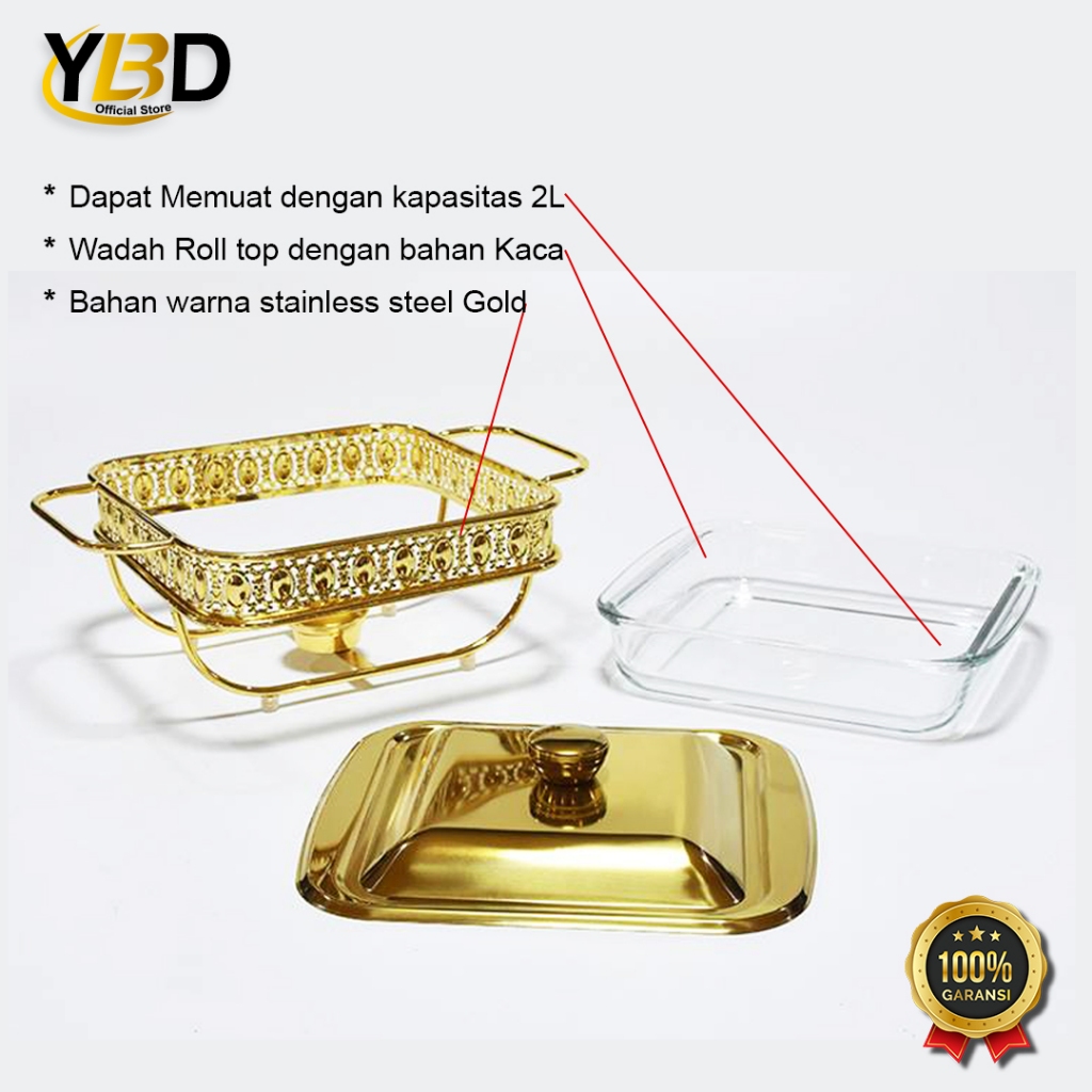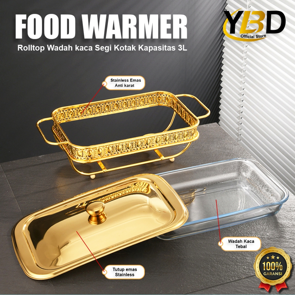 Roll top Food Warmer Gold Segi Kotak capacity 2L & 3L glass container / Roll top buffet / buffet Food container / Gold buffet container / Chafing dish / Roll top buffet / Buffet Food storage place / Container Stainless steel glass material
