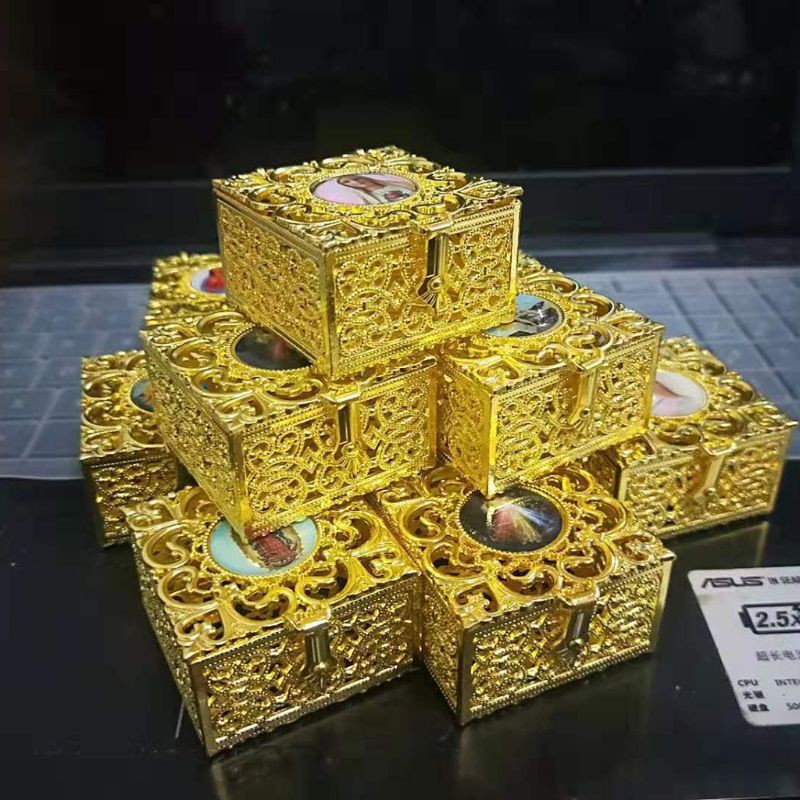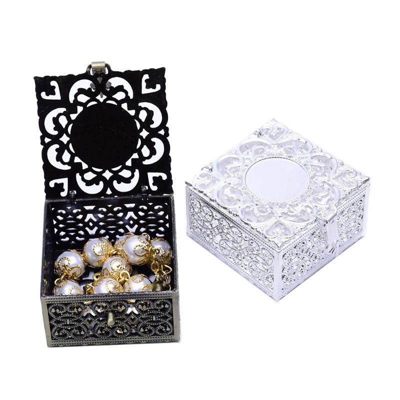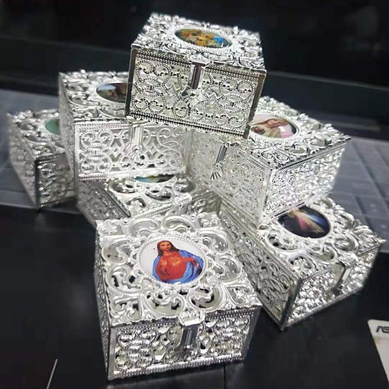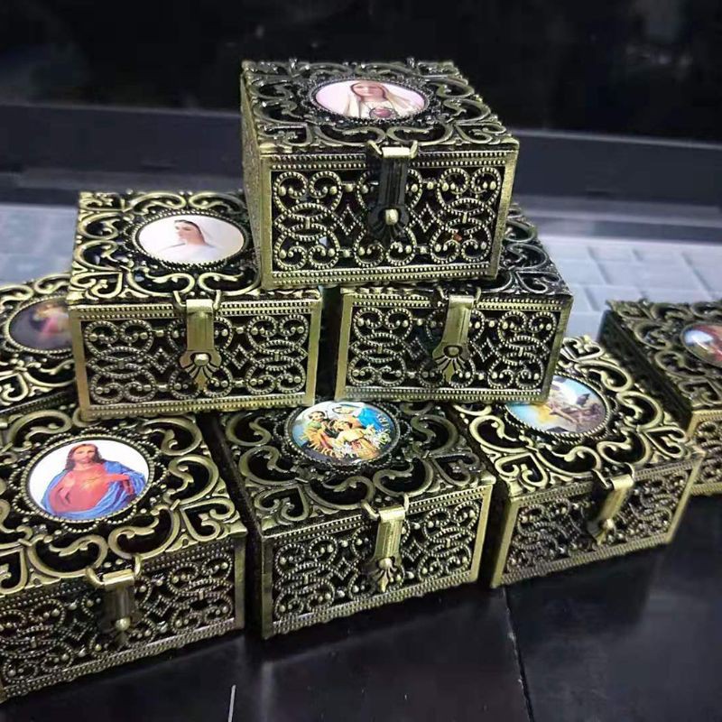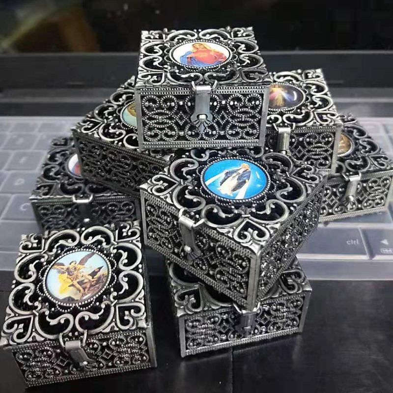 Rosary Bead Box Necklace Metal Christian Catholic Religious Jewelry Case Storage