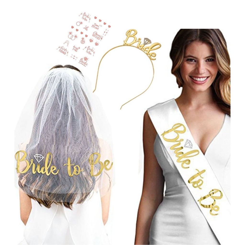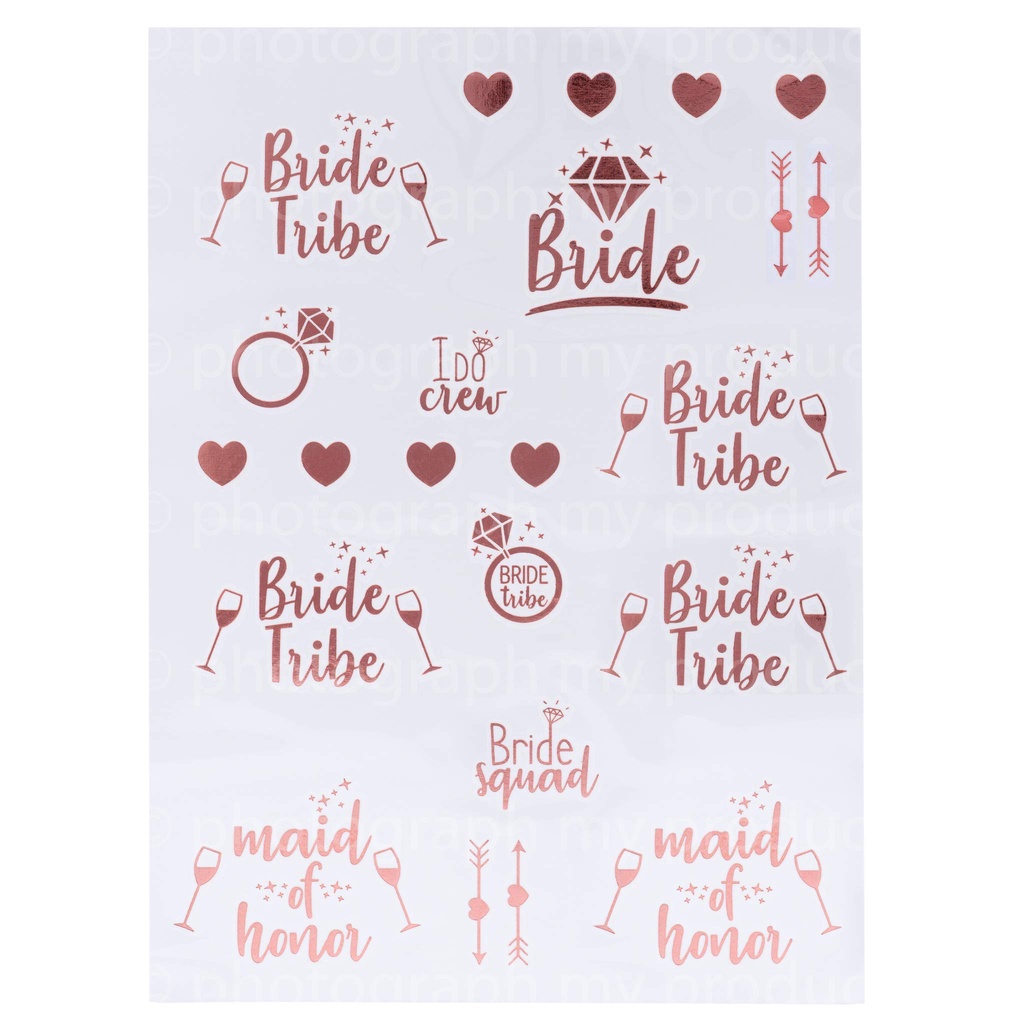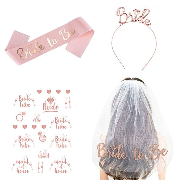 Rose Gold Bride's Veil, Sash, Headband, Tattoo Sticker | Bridal Shower, Bachelorette Party Decoration