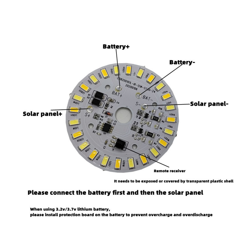 Round 3.2V 3.7V Two-color LED Solar Light Source Panel 12W Solar Ceiling Lamp Panel Remote Control Lamp Panel for Solar Yard Lights