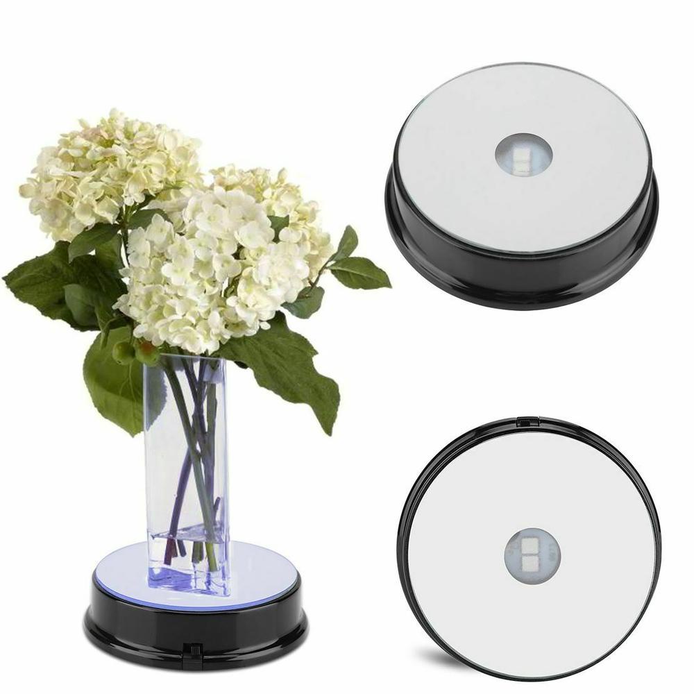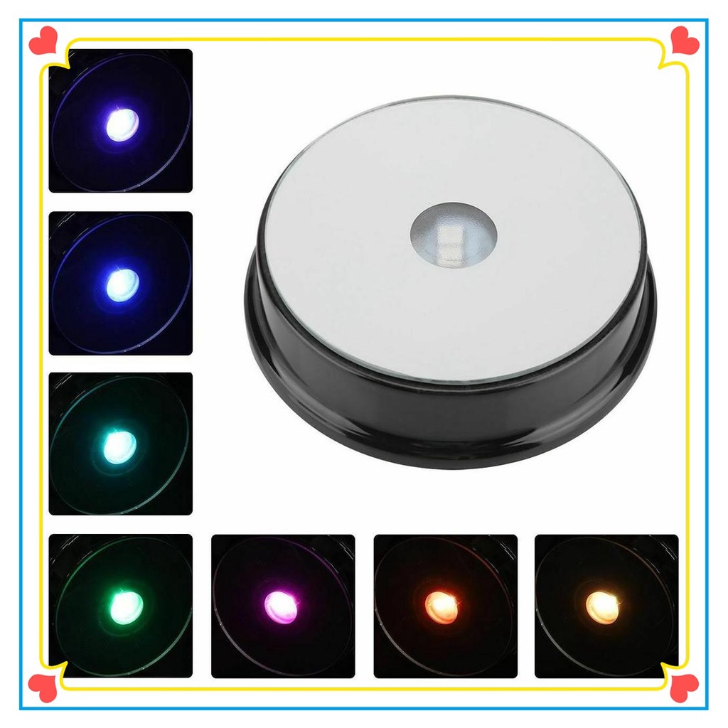 Round Crystal Glass Multicolor LED Battery Electric Light Up Display Stand Base