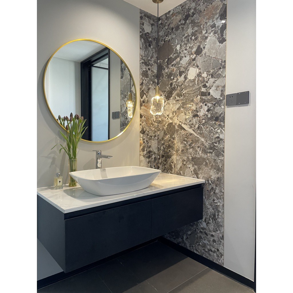 Round Explosion-proof Bathroom Mirror With Golden Metal Frame HD Toilet Mirror Hole-free/punch-free Dual-purpose Installation Wall Mirror Makeup Mirror Vanity Mirror