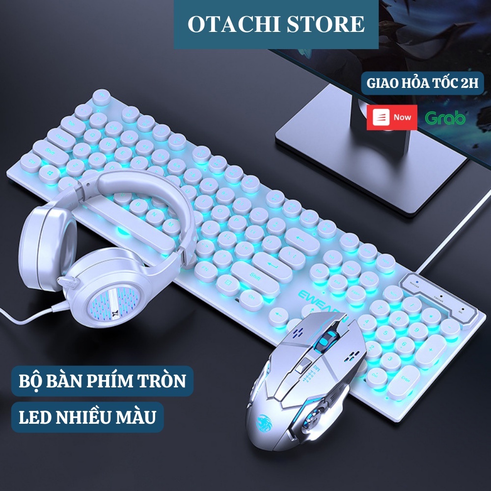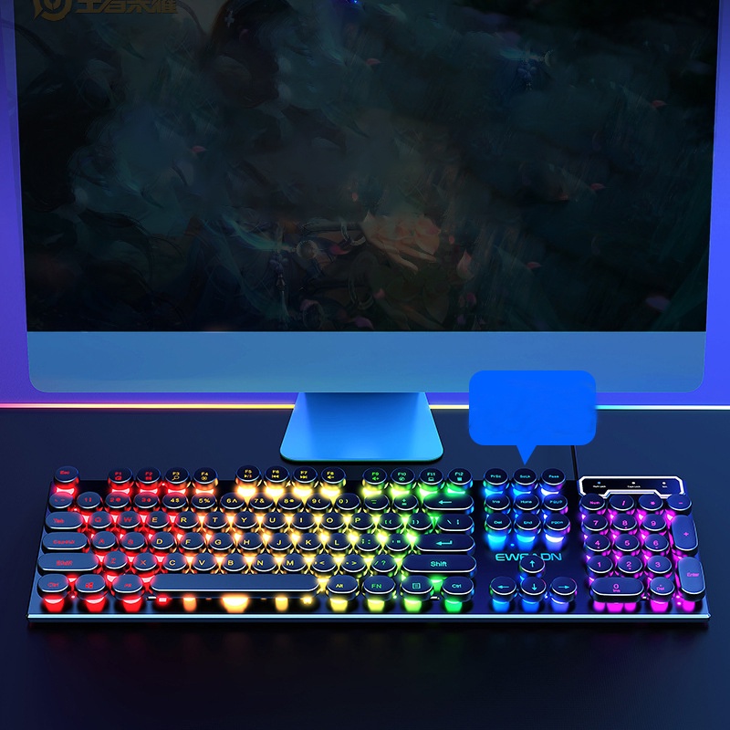 Round Keyboard Set with Wired Computer Mouse with Multi-Colored Glowing LED Light, Modern and Stylish Design