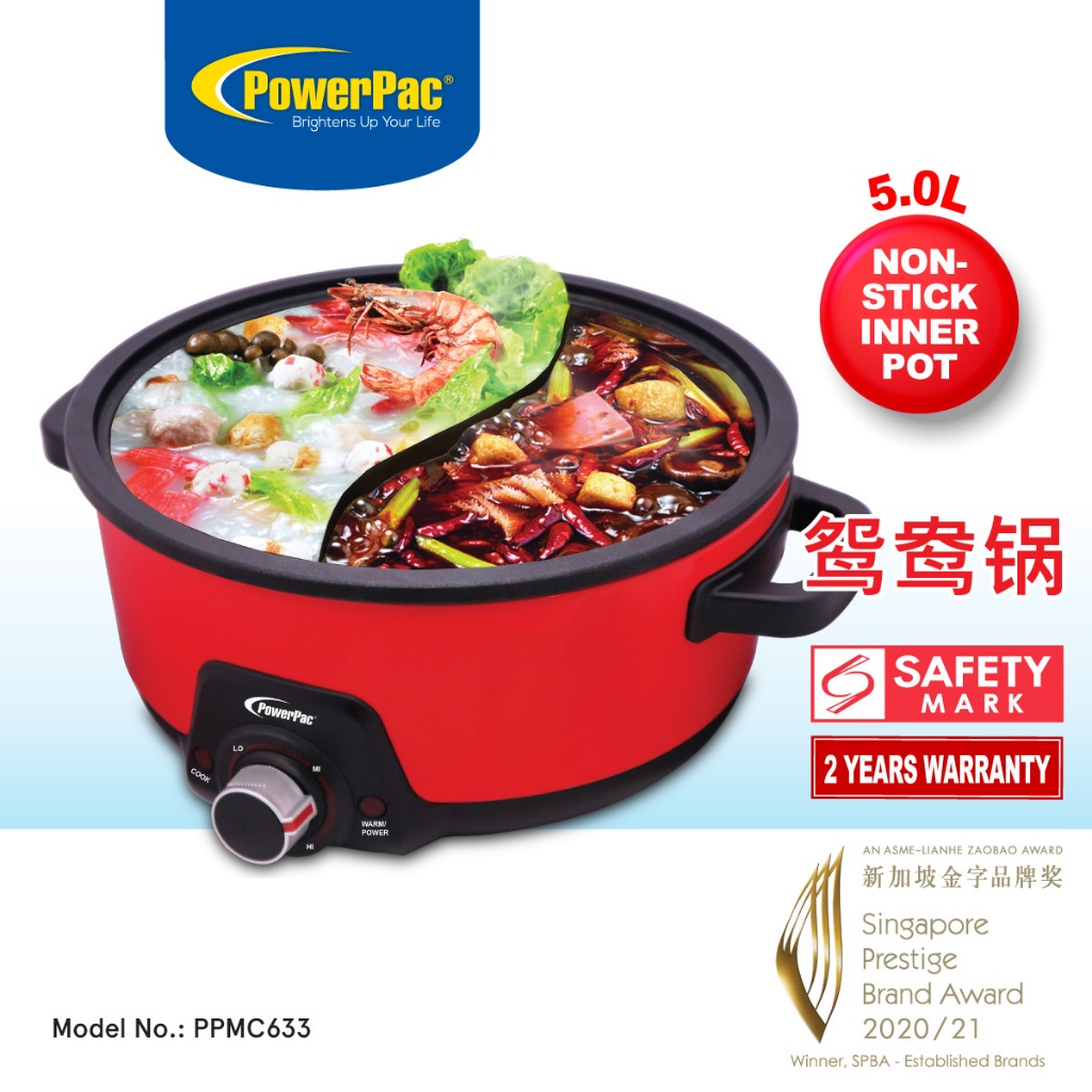 PowerPac Steamboat & multi cooker, Hot pot 5L with Yuanyang Pot (PPMC633)