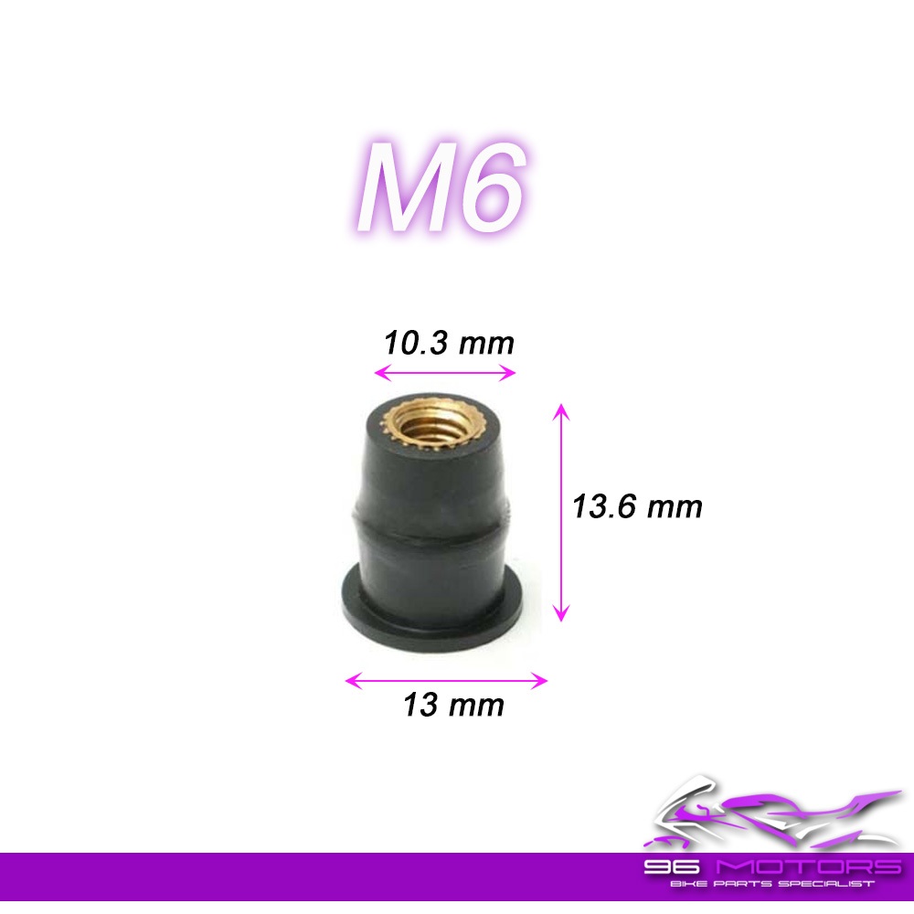 Rubber Well Nut M4 M5 M6 > 4mm 5mm 6mm > Fairing Cowl Fastener Blind > For Motorcycle > 96motors