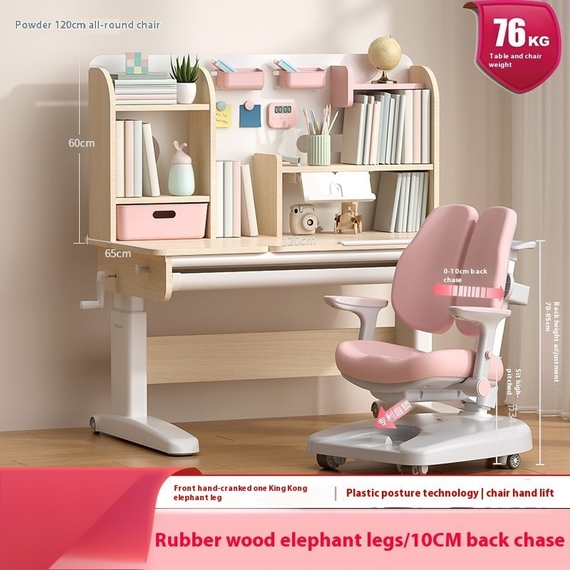 Rubber Wood Children's Study Desk Primary School Student Desk Adjustable Table Solid Wood Writing Desk Home Desk and Chair Set