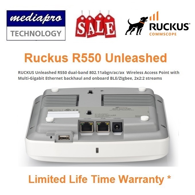 Ruckus R550 Indoor Wi-Fi 6 (802.11ax) Access Point with Dual 1Gbps Lan for Dense Environments Limited Lifetime Warranty