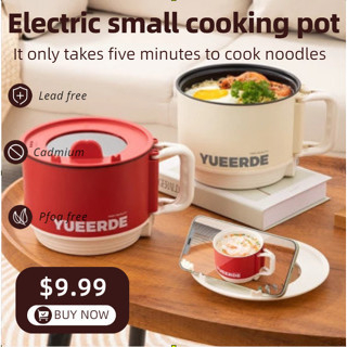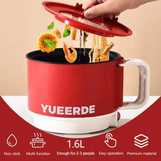1.6L Mini Electric Cooker with Folding Handle - Multi Portable Electric Hot Pot with Ceramic Glaze Non-Stick Liner for S