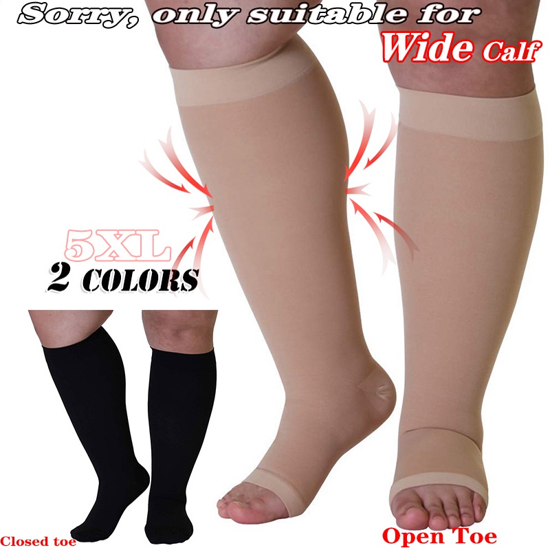 S-5XL Opaque Plus Size Compression Socks Knee-Hi 15-40 Mmhg Wide Calf Graduated Compression Stockings Relief Pain Support Socks Compression Socks Open Toe /Closed Toe