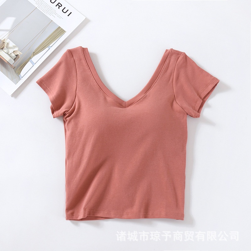 S-XL READY STOCK Women Chest Padded TShirts Casual Breathable V-Neck Short Sleeve T-shirt