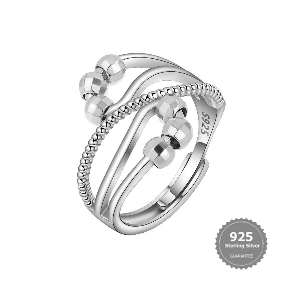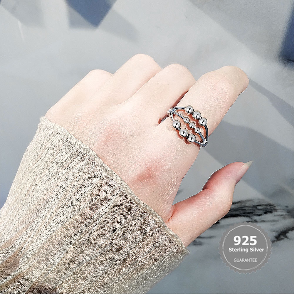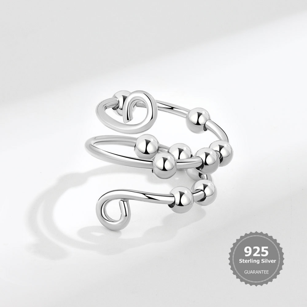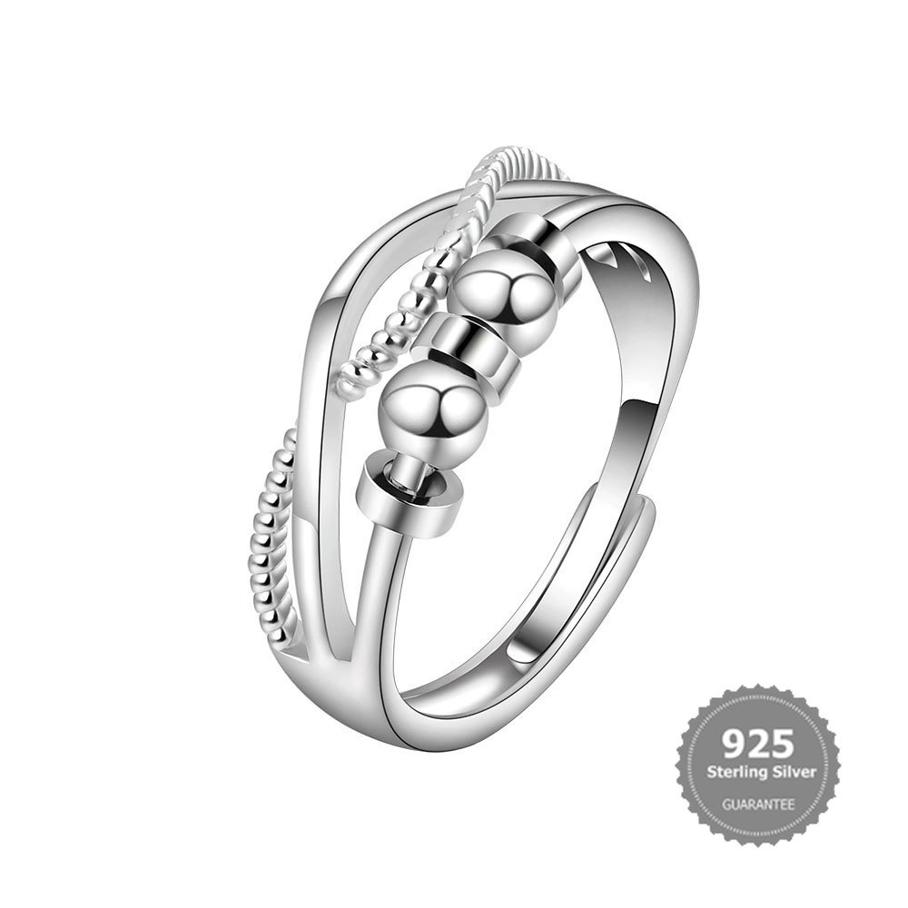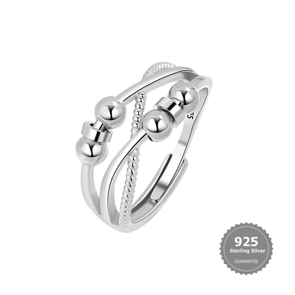 S925 Silver Spinning Ring Anxiety Stress Relief Ring Set