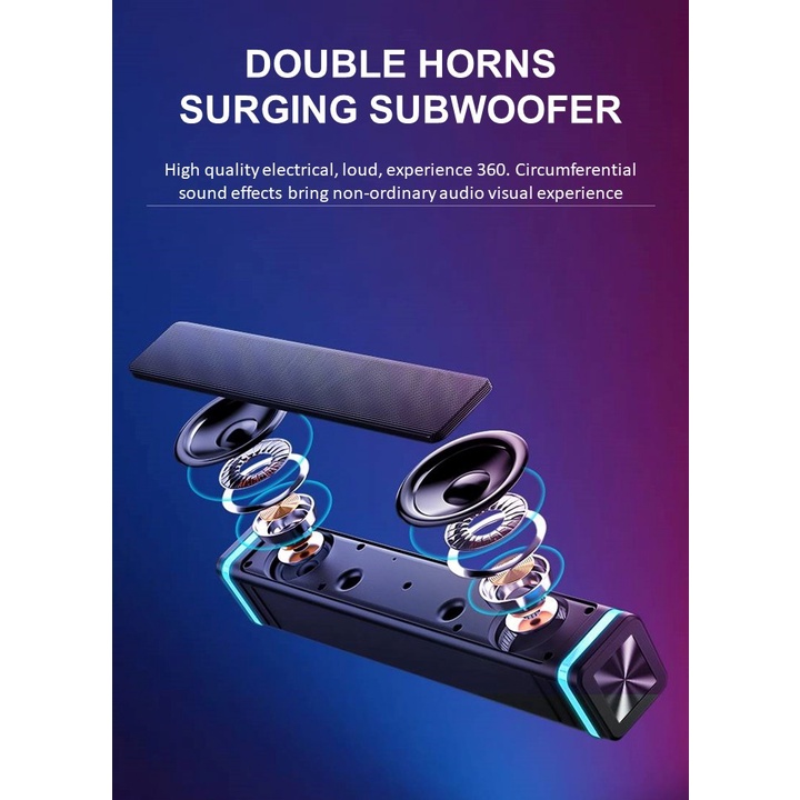SADA Computer Speaker V-186 USB Wired Bar Stereo Subwoofer Music Player Bass Surround Sound Box 3.5mm Audio Input