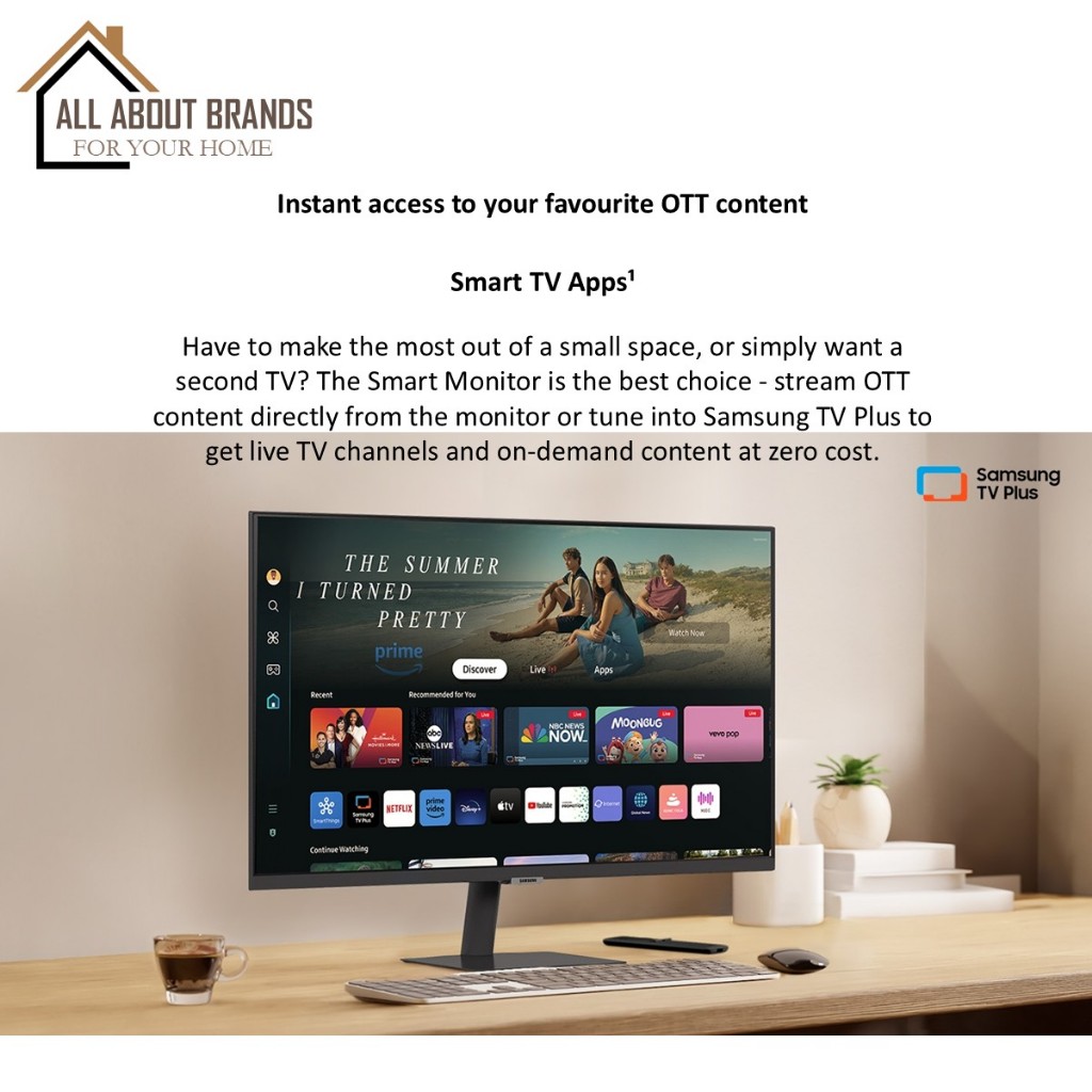 SAMSUNG 27inch Smart Monitor with TV Apps Full HD M5 M50D 27" | LS27DM500EEXXS BLACK