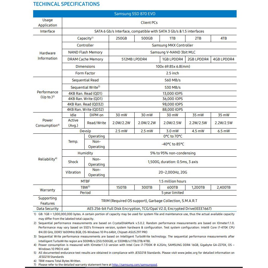 SAMSUNG SSD EVO 870 250GB / 500GB / 1TB / 2TB 2.5 inch SATA III