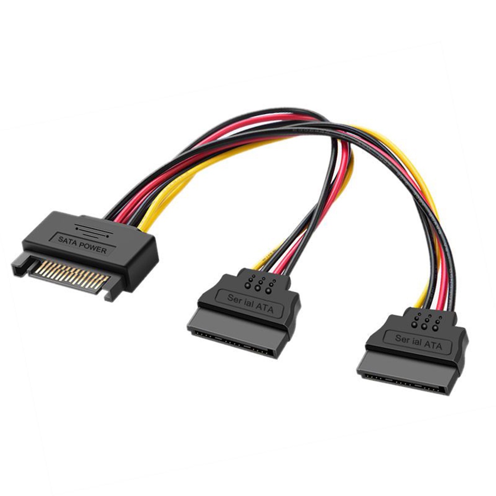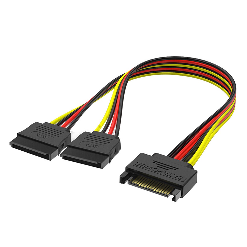 SATA 15pin Male to 2 x SATA 15pin Female Hard Disk Power Cable Serial ATA Y Splitter Dual Extension Cord Adapter Connector