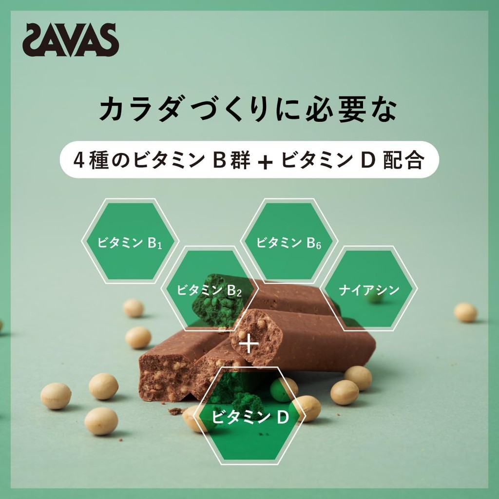 SAVAS Soy Protein Bar Bitter Chocolate Flavor 12 bars x 1 box 15g protein with vitamins Bar type Meiji(Direct from japan)
