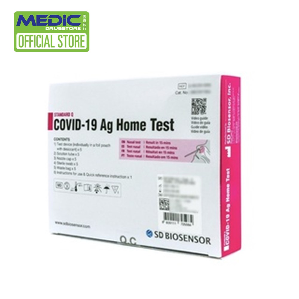 SD BIOSENSOR STANDARD Q COVID-19 AG Home Test Antigen Rapid Self Test (ART) Kit 5 Tests - By Medic Drugstore