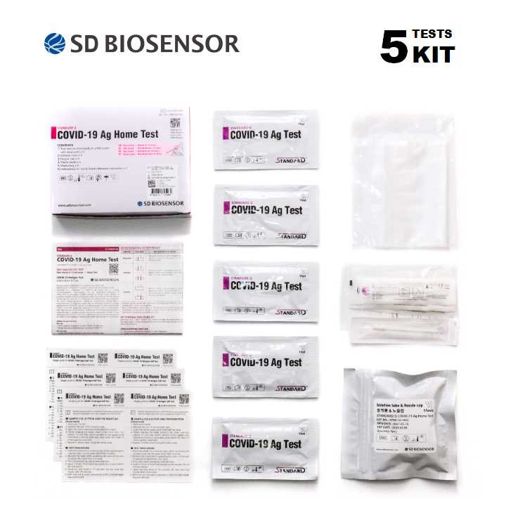 SD BIOSENSOR Standard Q Covid-19 AG Covid Test Kit (5 Test Kit) /Antigen Rapid Test Kit/Health (Expiry: Sept 2023)