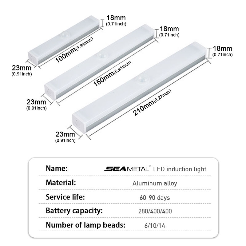 SEAMETAL LED Induction Light Cabinet Automatic Sensor Lamp 21/15/10CM Car Interior Reading Lights Sensor Switch Light