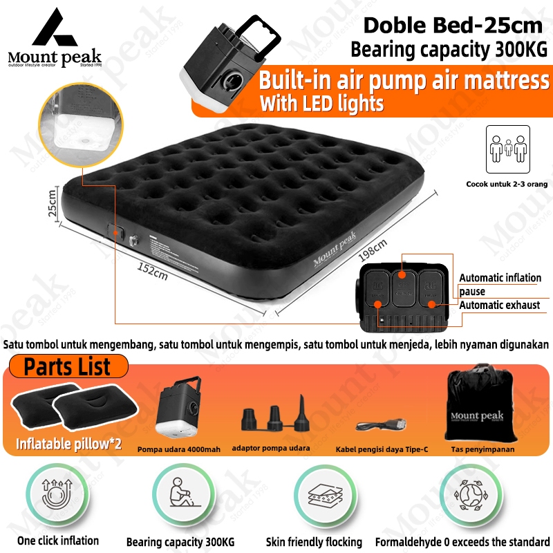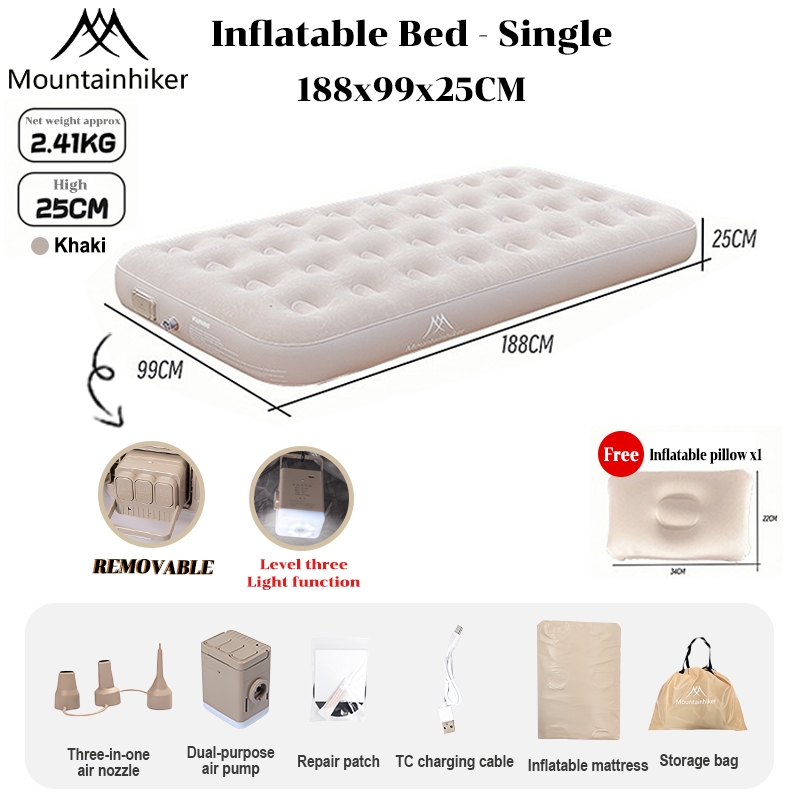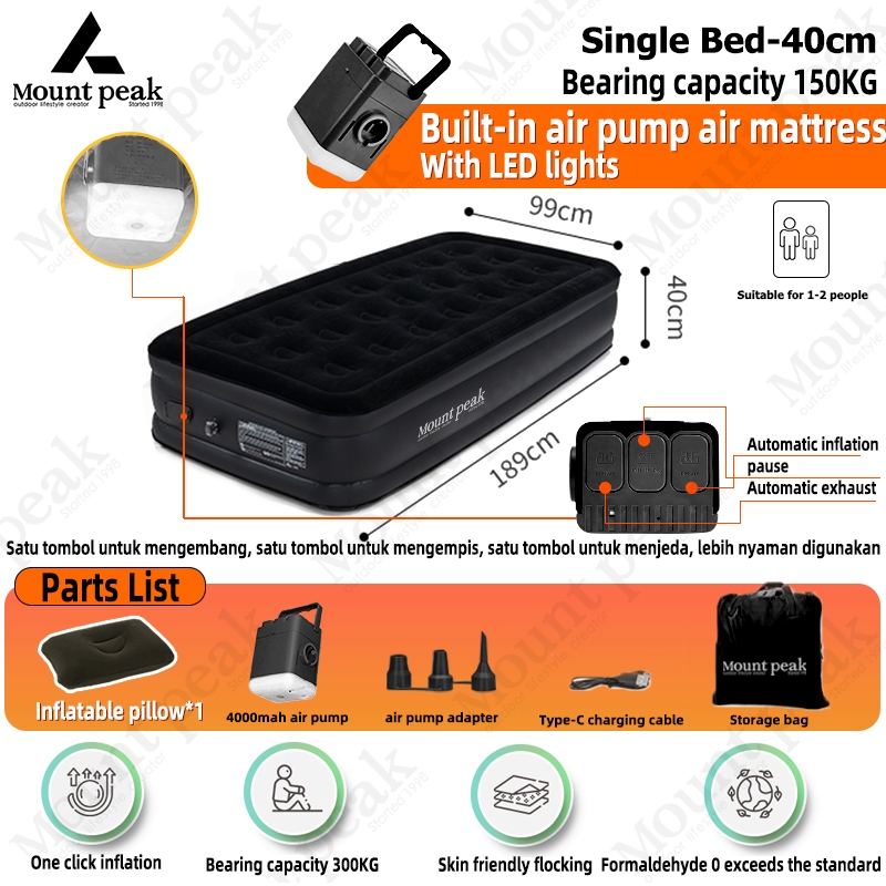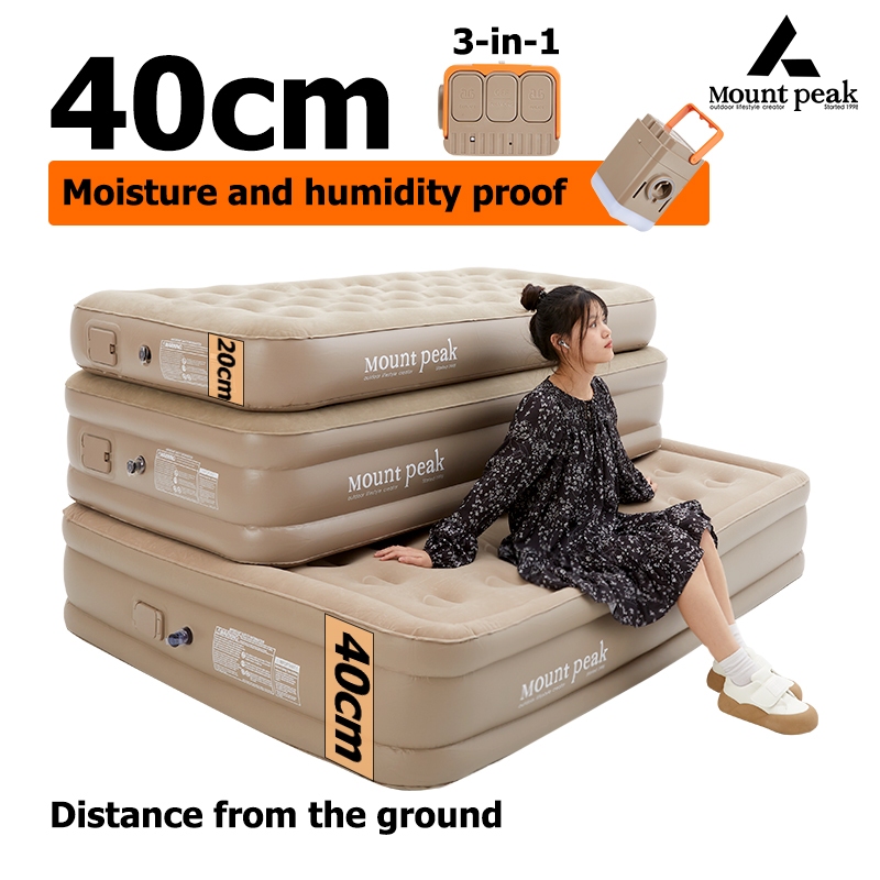 SG ⚡️Ready stock⚡️ Mountpeak 1 year warranty 2025 New Upgrade(5 layers) single double airbed air mattress 5ft built in air pump, (built in battery) thickness 40cm self inflating single double airbed 40cm high with pump