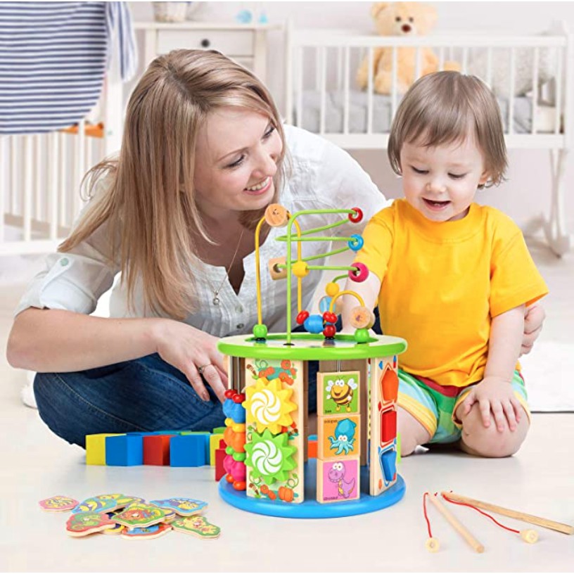 SG 10in1 Baby Wooden Activity Cube Educational Toy for baby toddler Montessori Birthday Gift