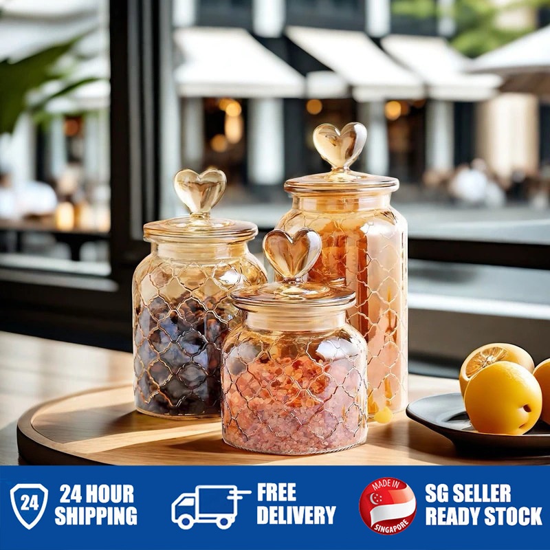 SG [In Stock]Airtight Glass Jar Cookie Food Storage Container Spice Bottles Balang kaca Cheaper For Set jar cointainer
