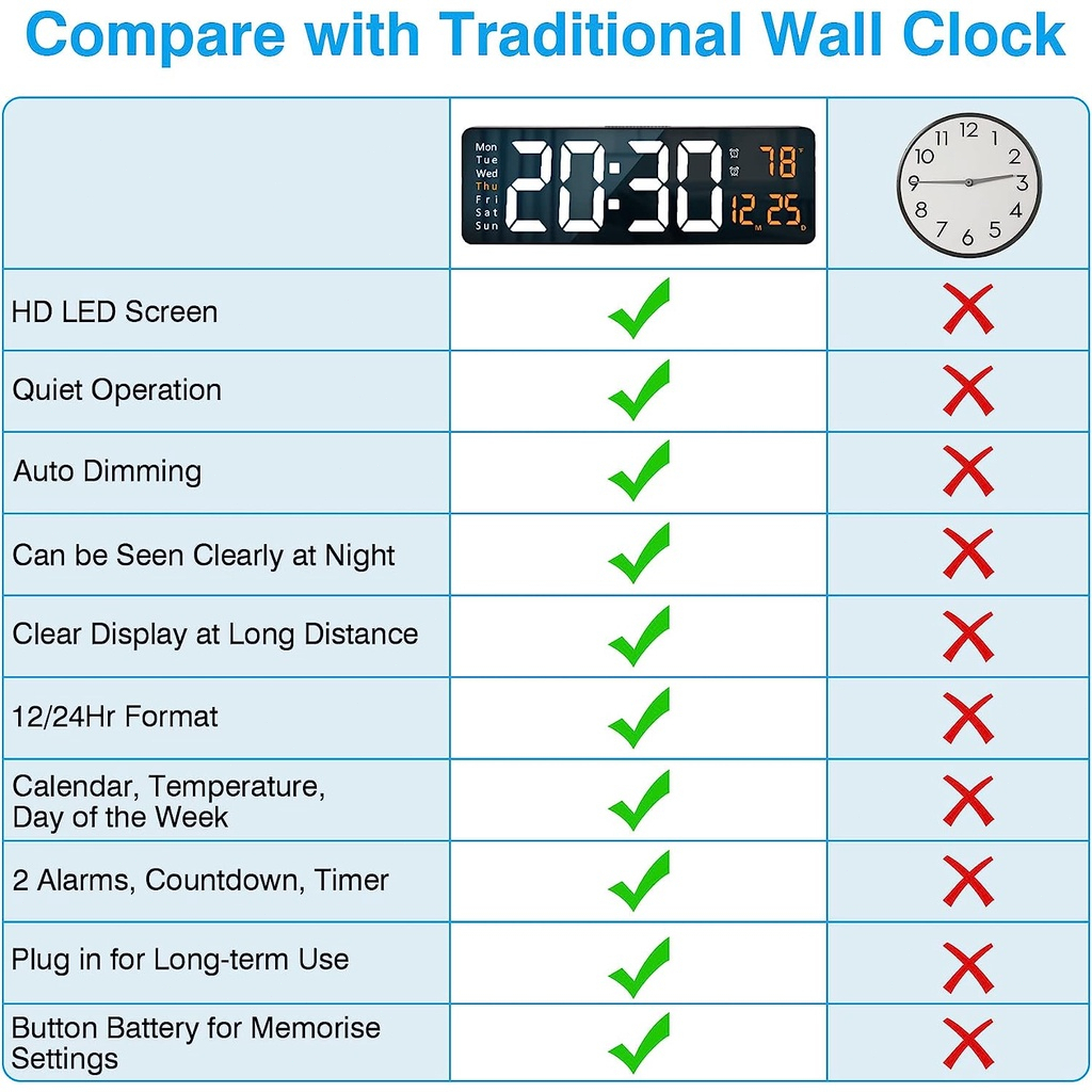 SG LED Digital Wall Clock Big Screen Large Display Alarm Clock with Remote Control Temp Date (USB Powered)