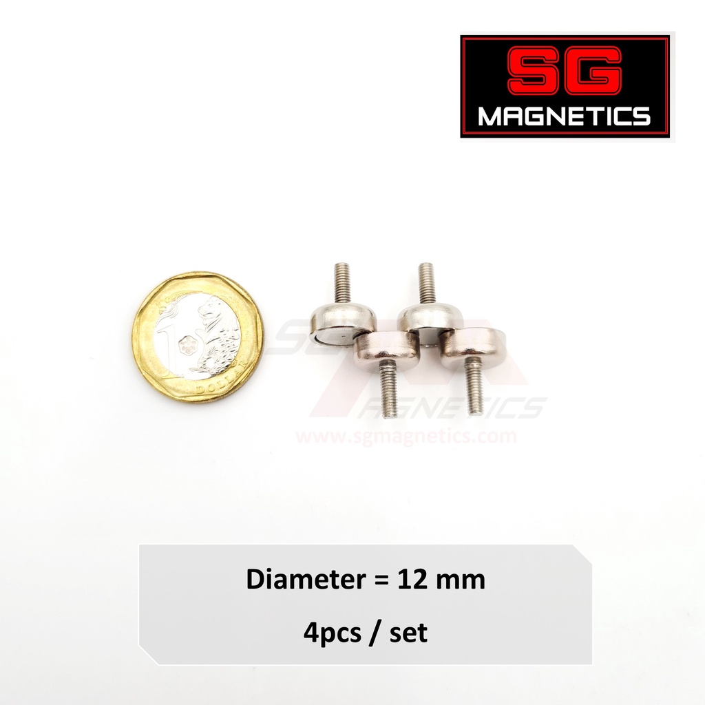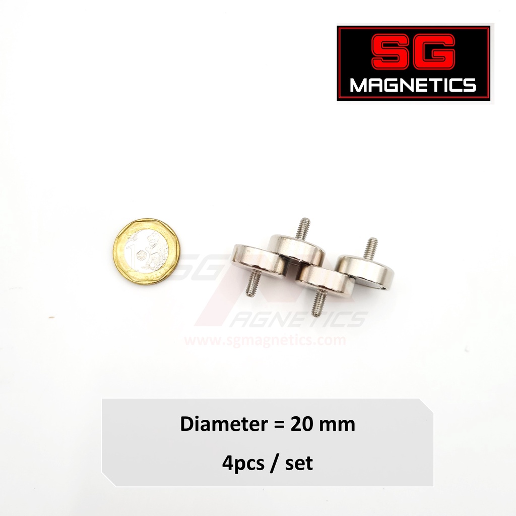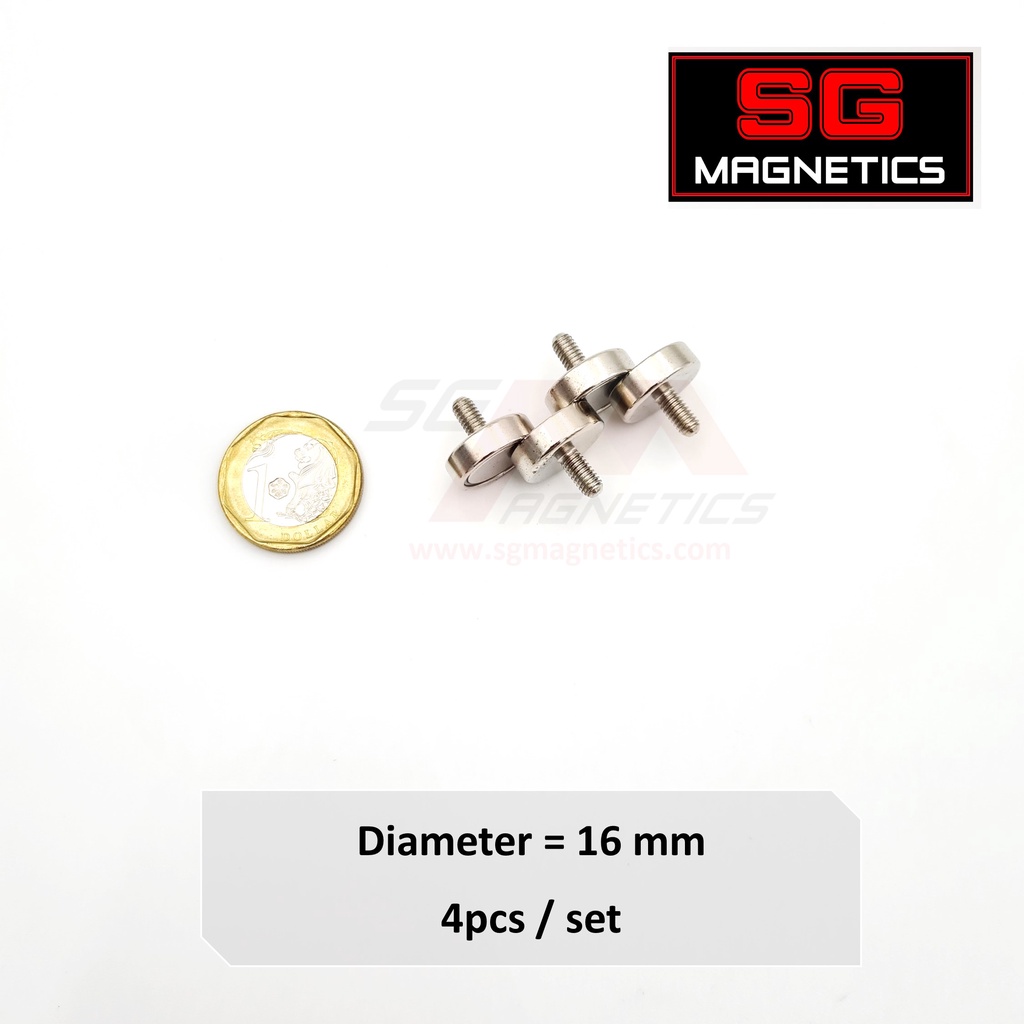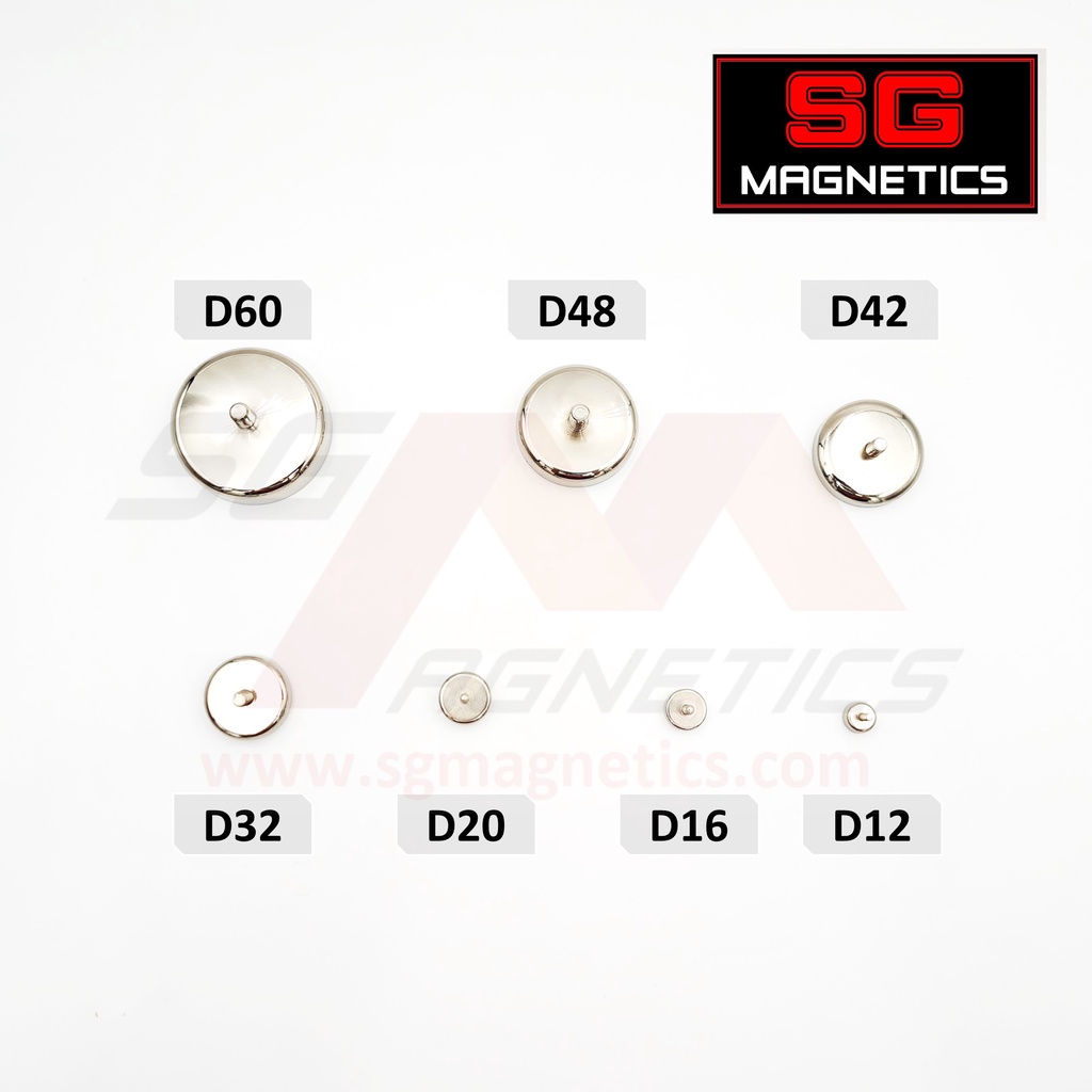 SG Magnets External Thread Pot Magnets - Neodymium screw heavy duty mounting metal Shallow Pot Ext Threaded