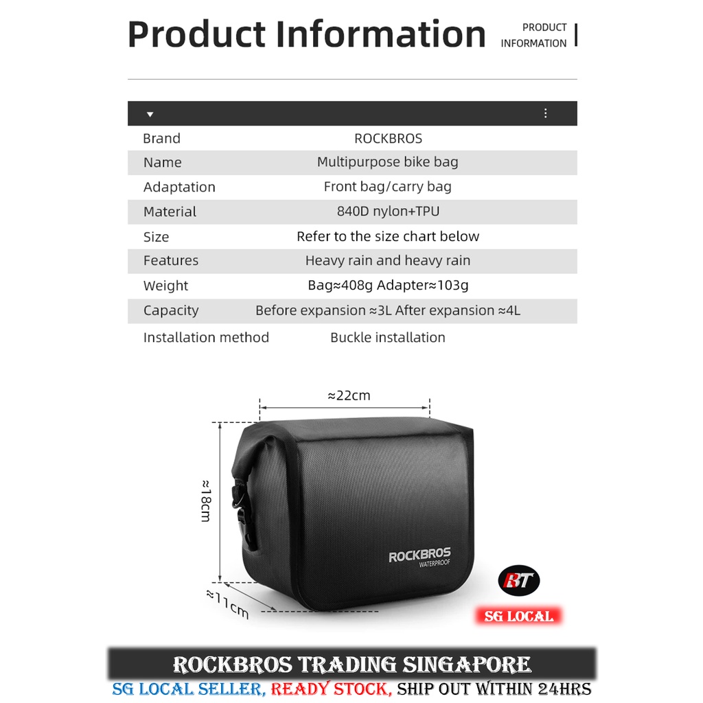 SG ROCKBROS Foldable Bicycle Bag Bro Front Block Carrier Bag Waterproof crius camp java 3Sixty pike dahon Fnhon bag