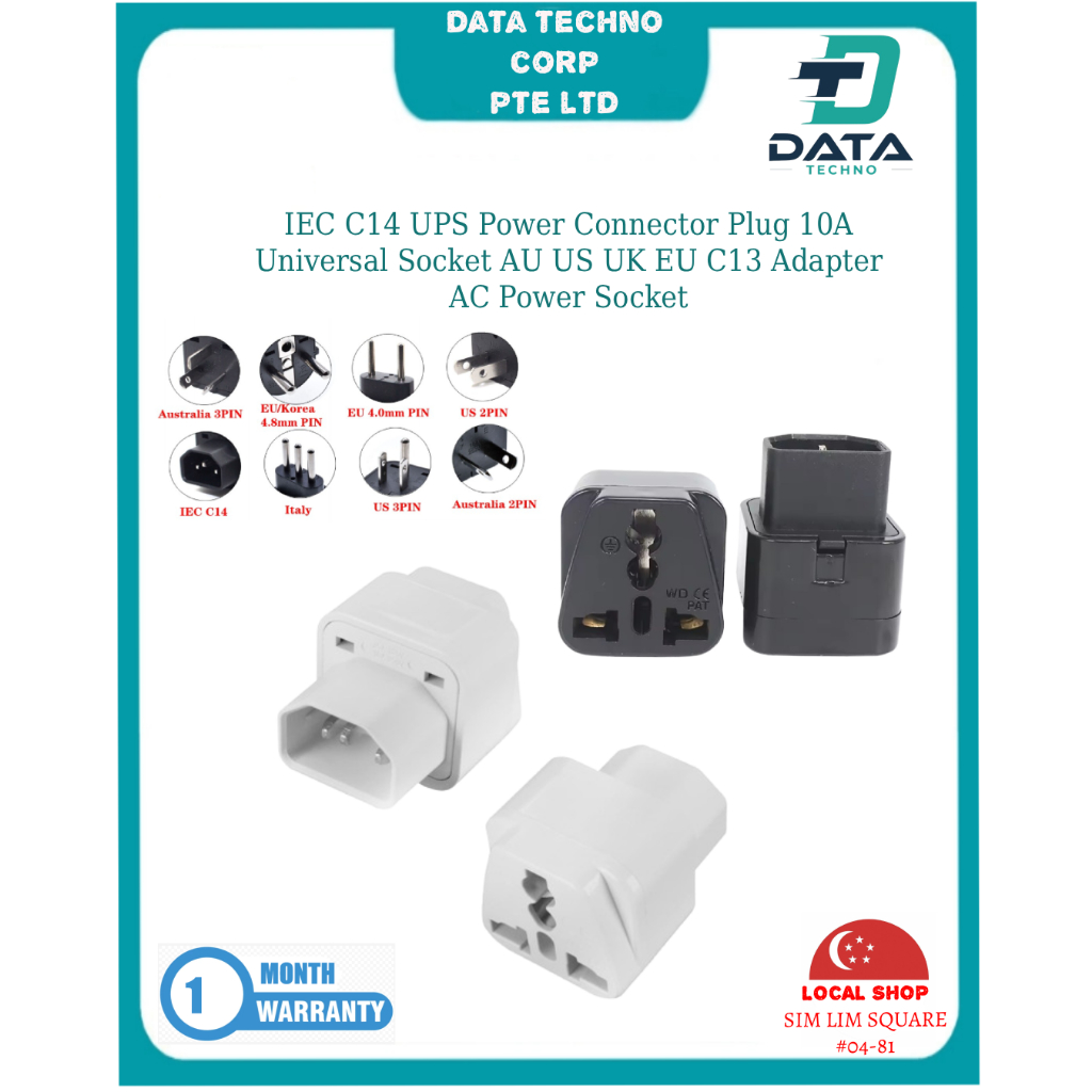 SG Local - IEC C14 Ups Power Connector Plug 10A Universal Female AU US UK EU C13 Adapter Socket Black & White
