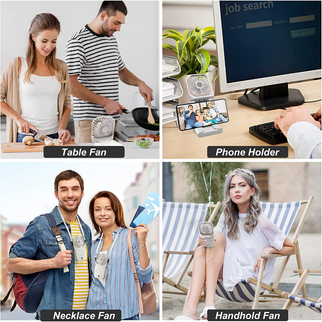 SG STOCK Portable power fan Mini fan, handheld fan, USB fan, small fan, foldable fan, foldable USB charging necklace fan, mobile power fan, can be used to charge mobile phones