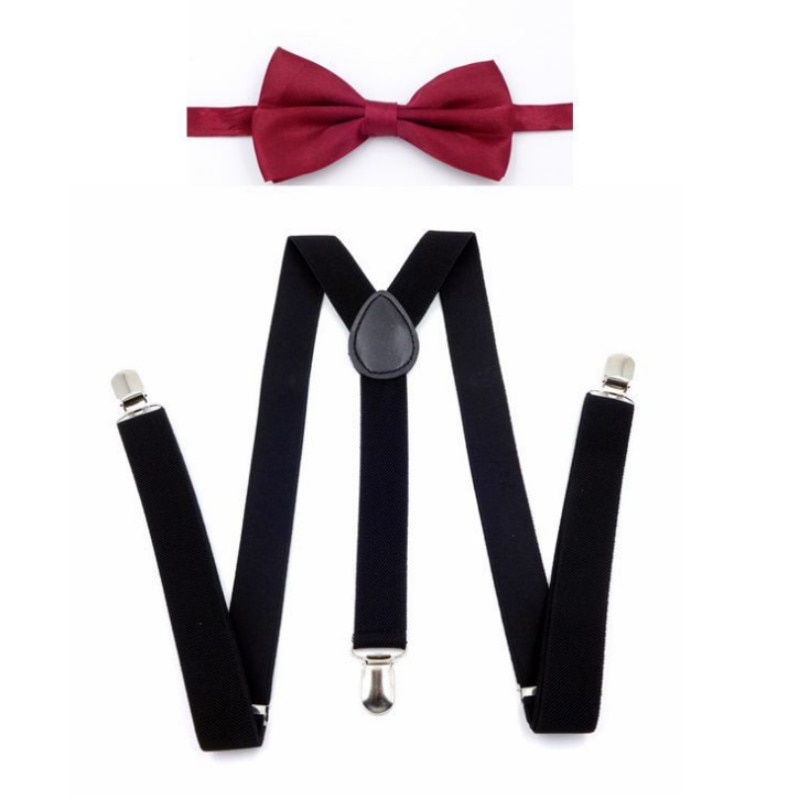 SG STOCK Unisex Clip-On Suspender&Bow Tie Combo sets Fashion Men's Suit Adjustable Suspenders Wedding Tie Accessories