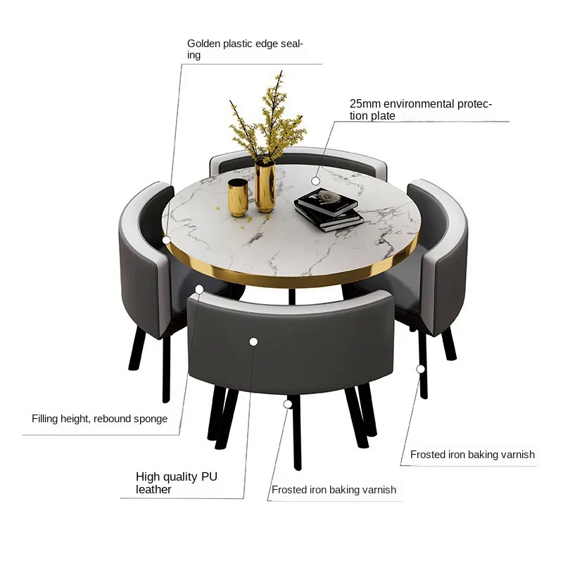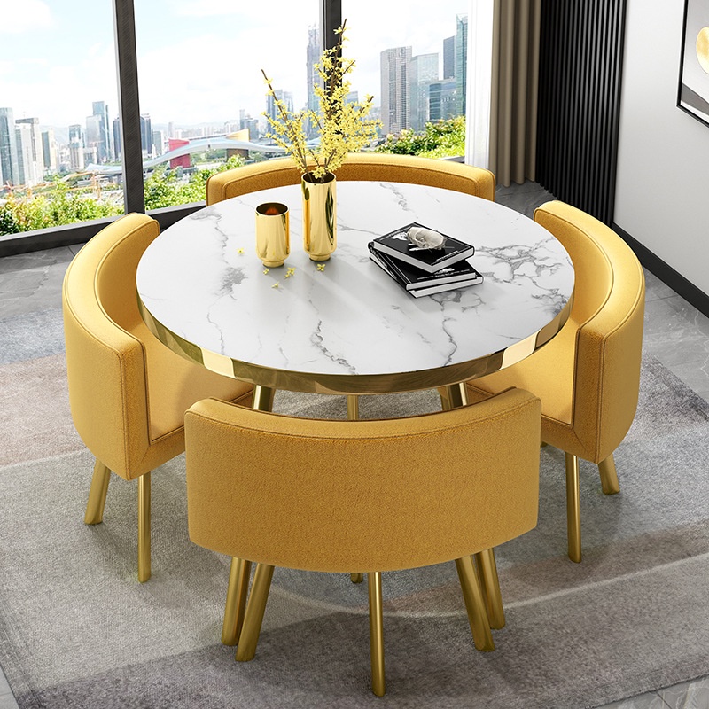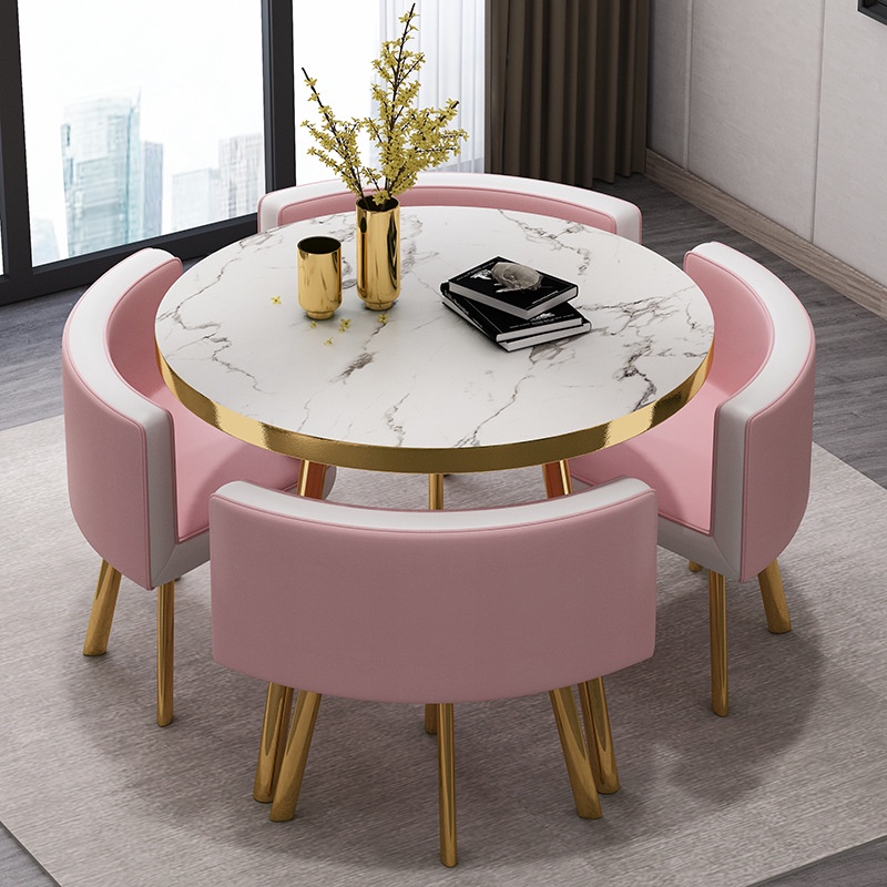 SG SalesLight Luxury Dining Table Cream Style Small Apartment Round Table Home Dining Table Coffee Table Negotiation Table and Chair Set Dining Table and Chair Home Dining Chair