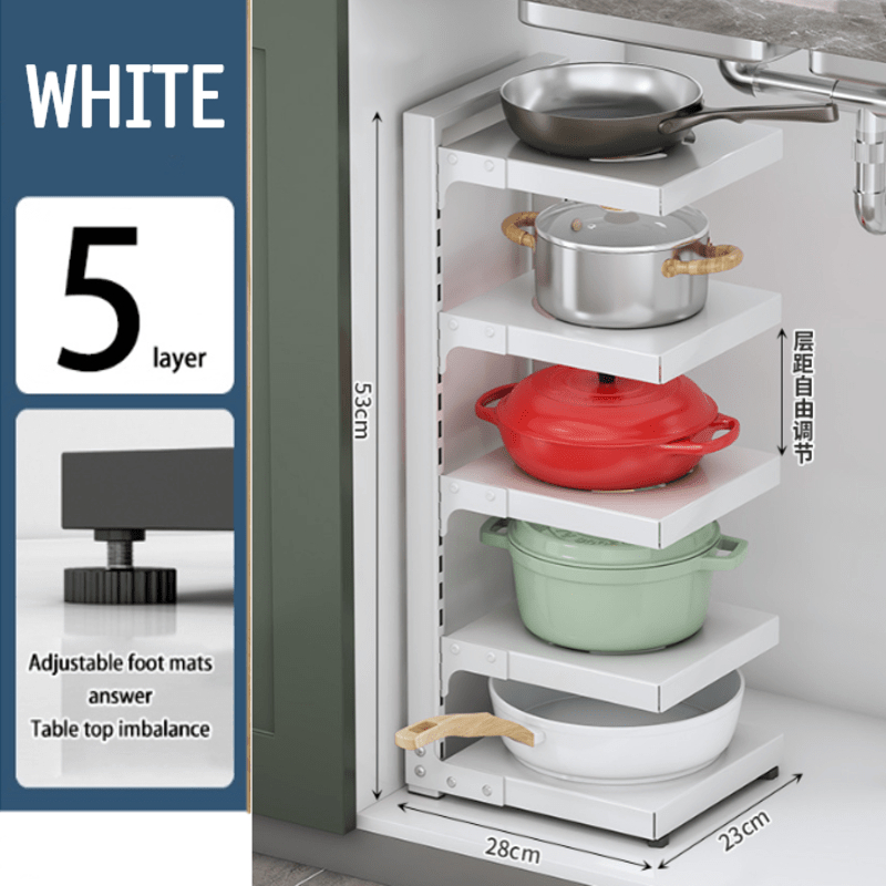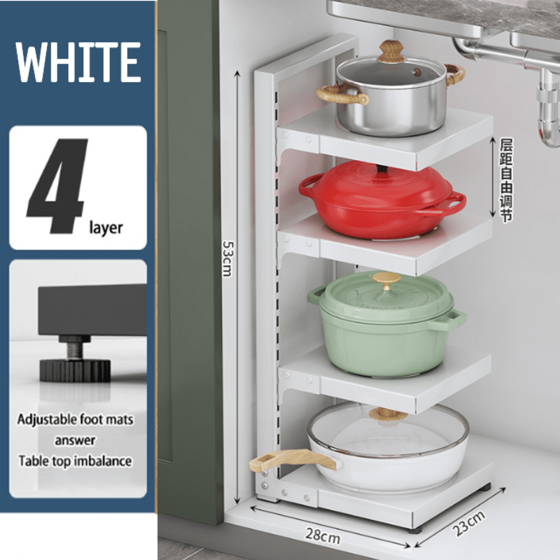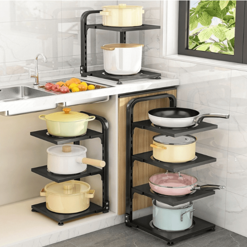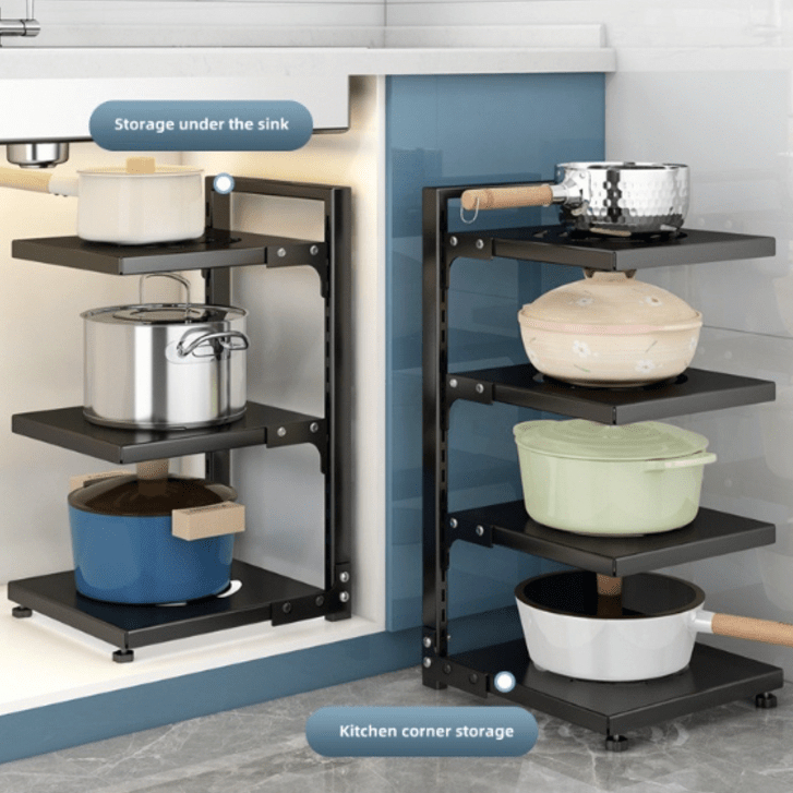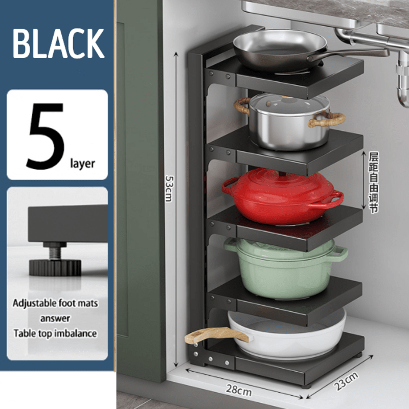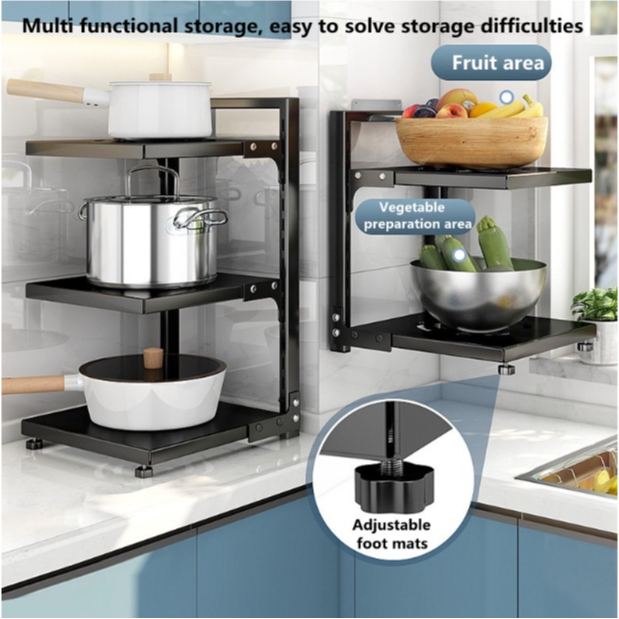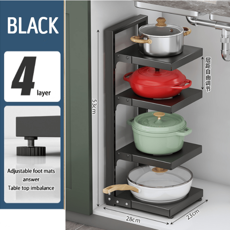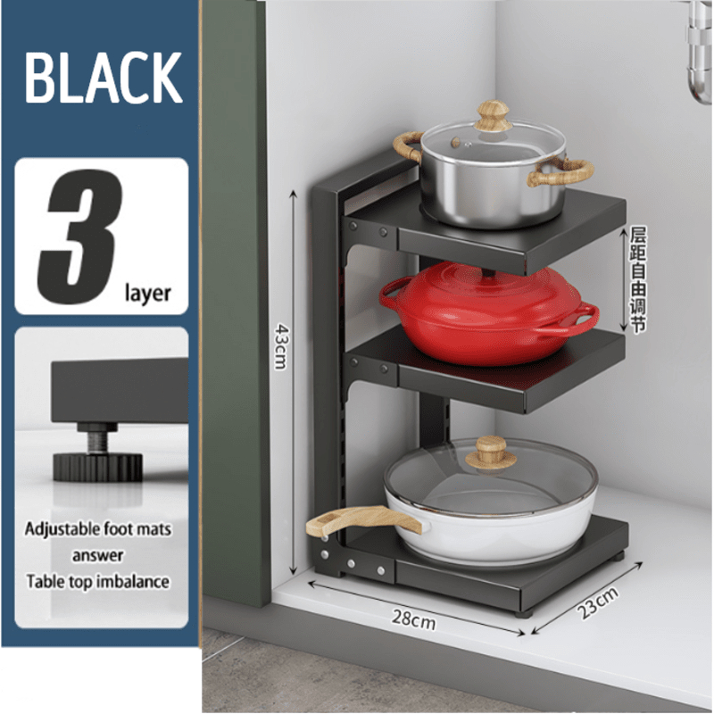 SG Seller Adjustable Pots Rack Upgraded Pot Organiser Under Sink Rack Kitchen Rack Steel Kitchen Pot Holder Sink