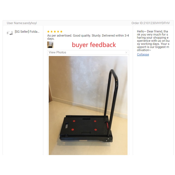 SG Seller Hand Trolley (Super low price) ( Foldable ) Load Weight 100kg With Silent Wheel Installed Trolley-fast deliver