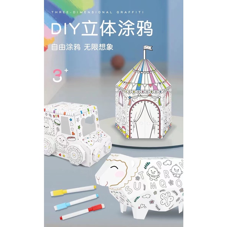 SG Seller| Kids 3D DIY Doodle Playhouse Drawing& Painting Playhouse Toys Craft Activity For Kids