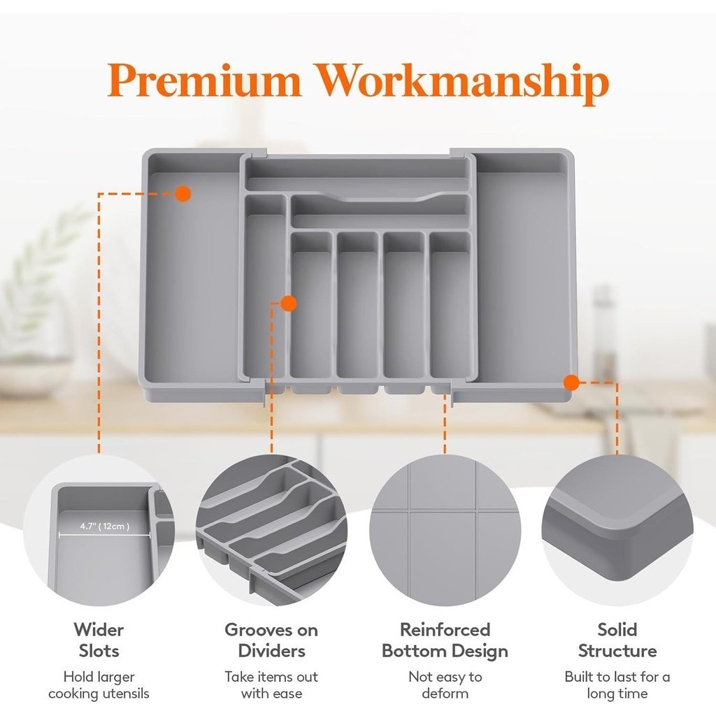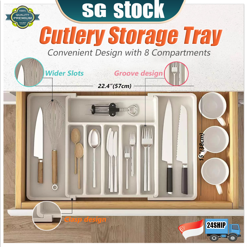 SG Stock Cutlery Storage Tray Kitchen Storage Tray Drawer Cutlery Tray Adjustable Cutlery Drawer Organizer Flatware Tray