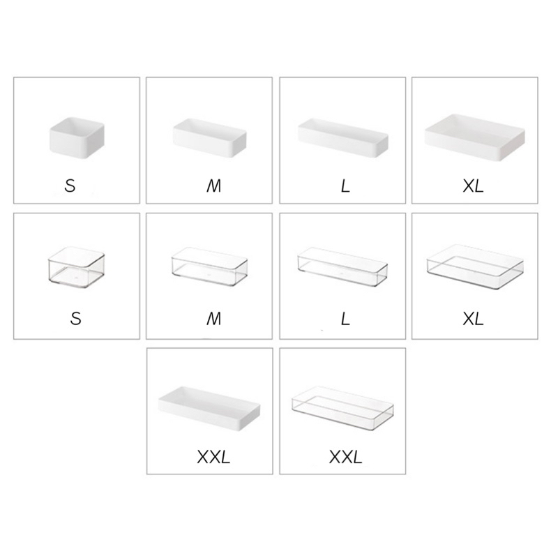SG Stock Drawer Organiser Sorting Tray Compartments Modular Box Slots Clear and White 5 Sizes NEW VERSION