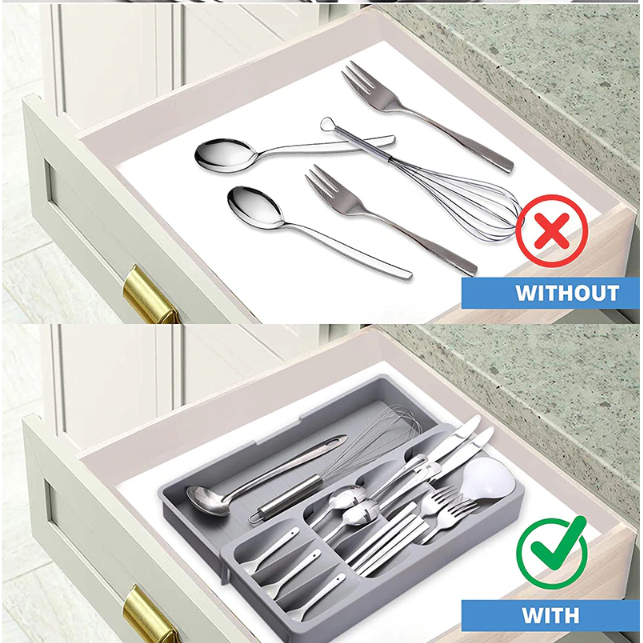 SG Stock Expandable Kitchen Drawer Organiser Tray | Cutlery Holder Utensils Organizer | Fork Spoon Knives Storage