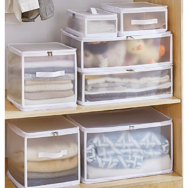 SG Transparent Wardrobe Organizer / Clothes Storage Box / Foldable Waterproof Closet Drawer Bedsheet Organiser
