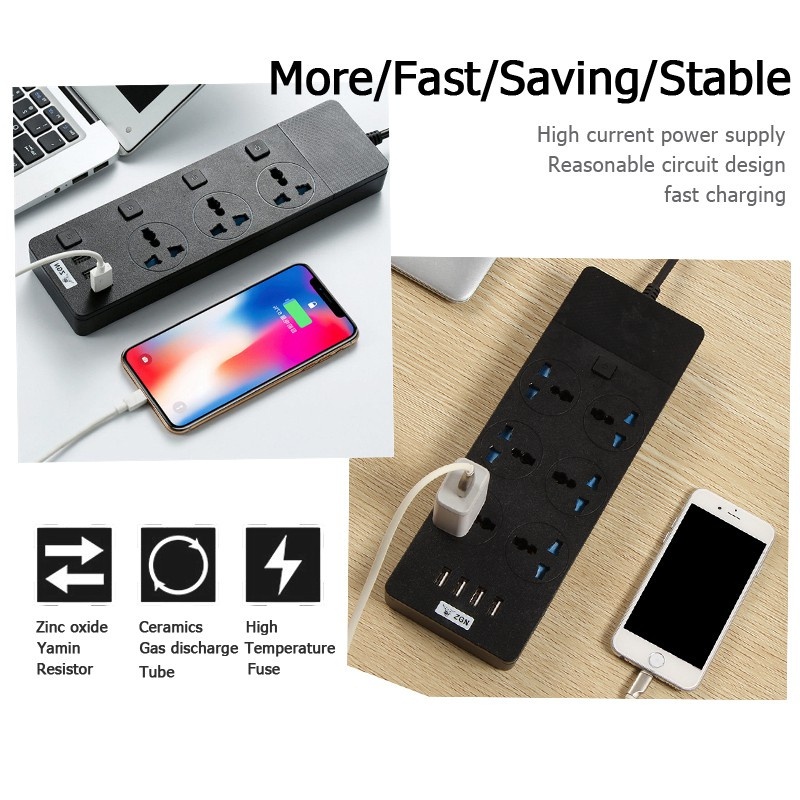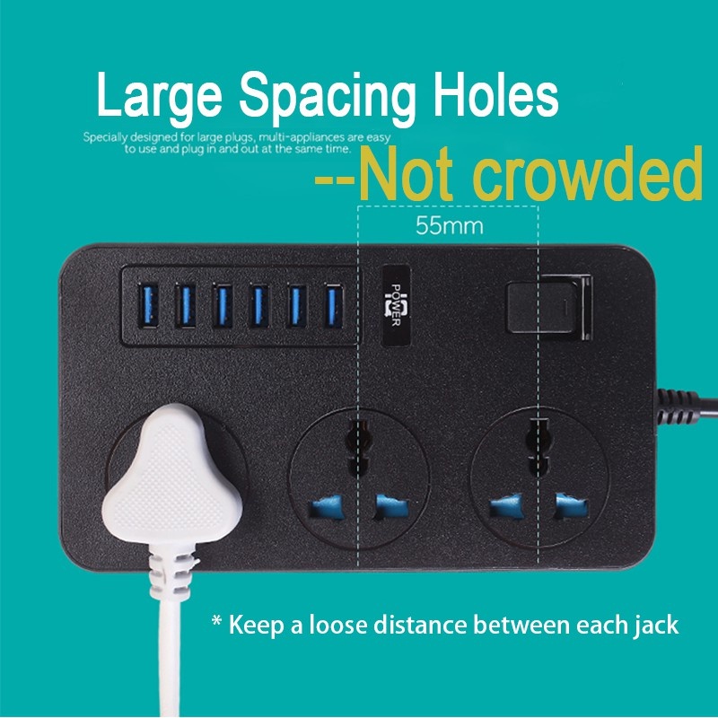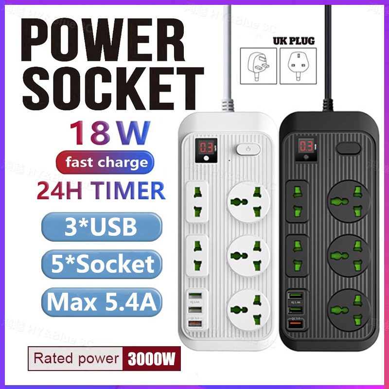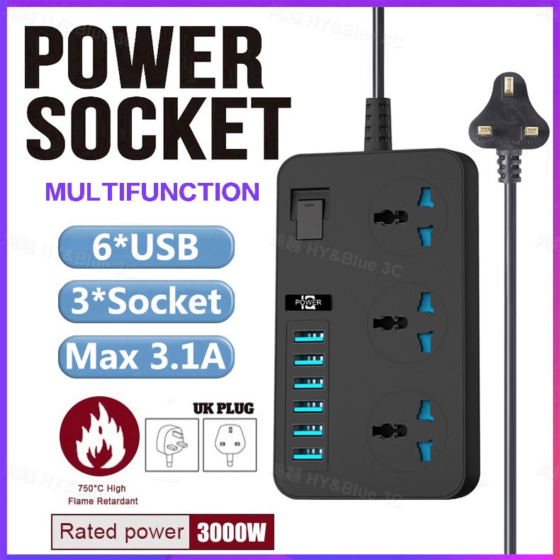 SG&UK Plug 3000W Power Socket Universal Power Strip+USB Charger Output Fast charging 3.1A Extension WIth Anti-misplug Safety Door 2/3/5 Meter Long Extension Cord Surge Protector