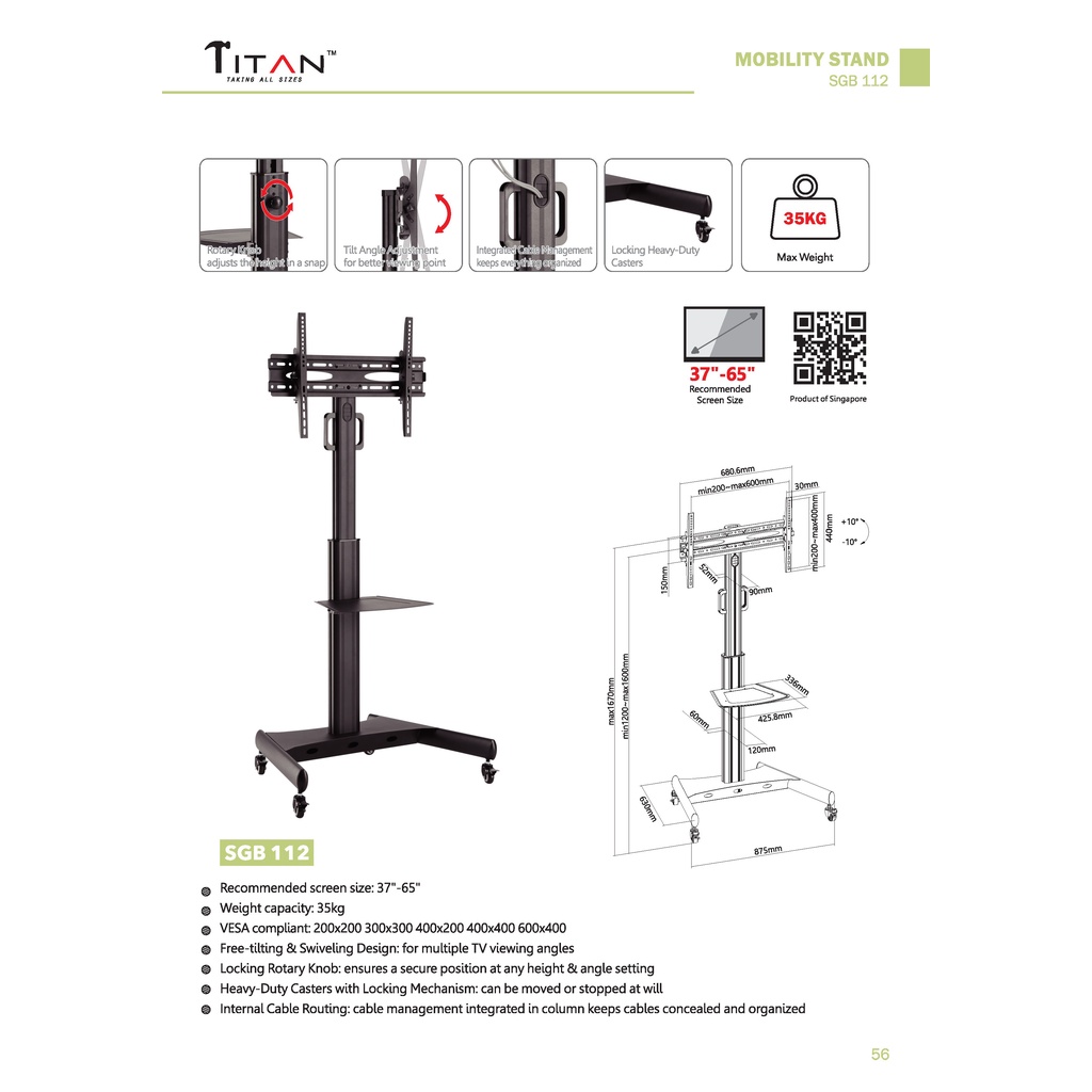 SGB112 MOBILITY STAND FOR 32'' - 65' TV [With Installation]