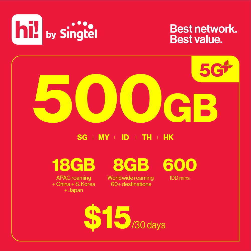 Singtel 5G SGD15 hi Prepaid SIM Card (500GB Data for 28Days) (SIM Card to be registered within 7Days)