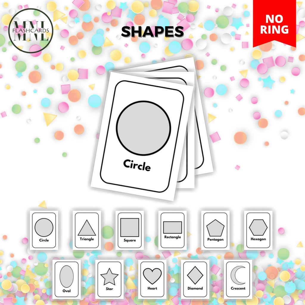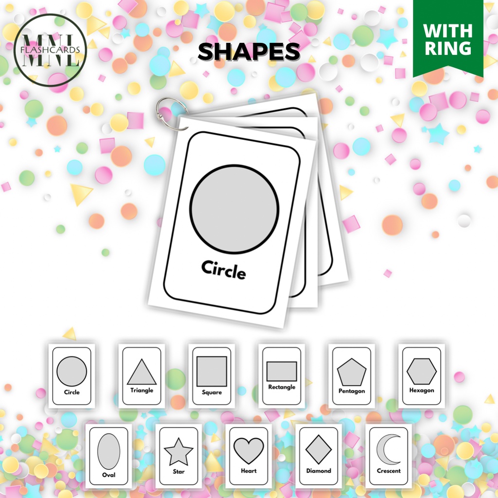 SHAPES FULLY LAMINATED EDUCATIONAL FLASHCARDS WITH OR WITHOUT RING BIND (BLACK AND WHITE)