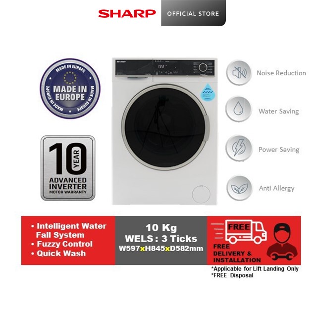 SHARP 10KG Inverter Front Load Washer ES-HFH014AW3 l 15 Program l 2 Year Warranty + Free Delivery + Installation